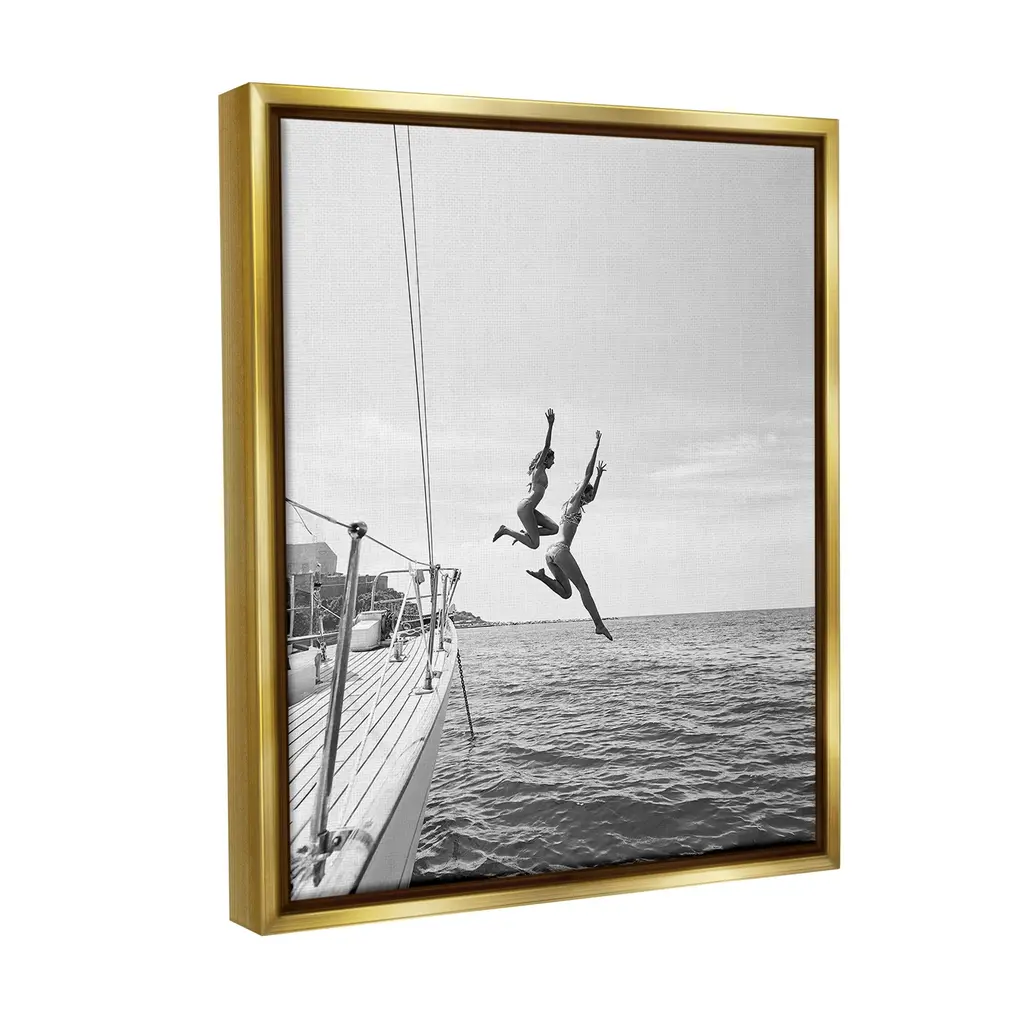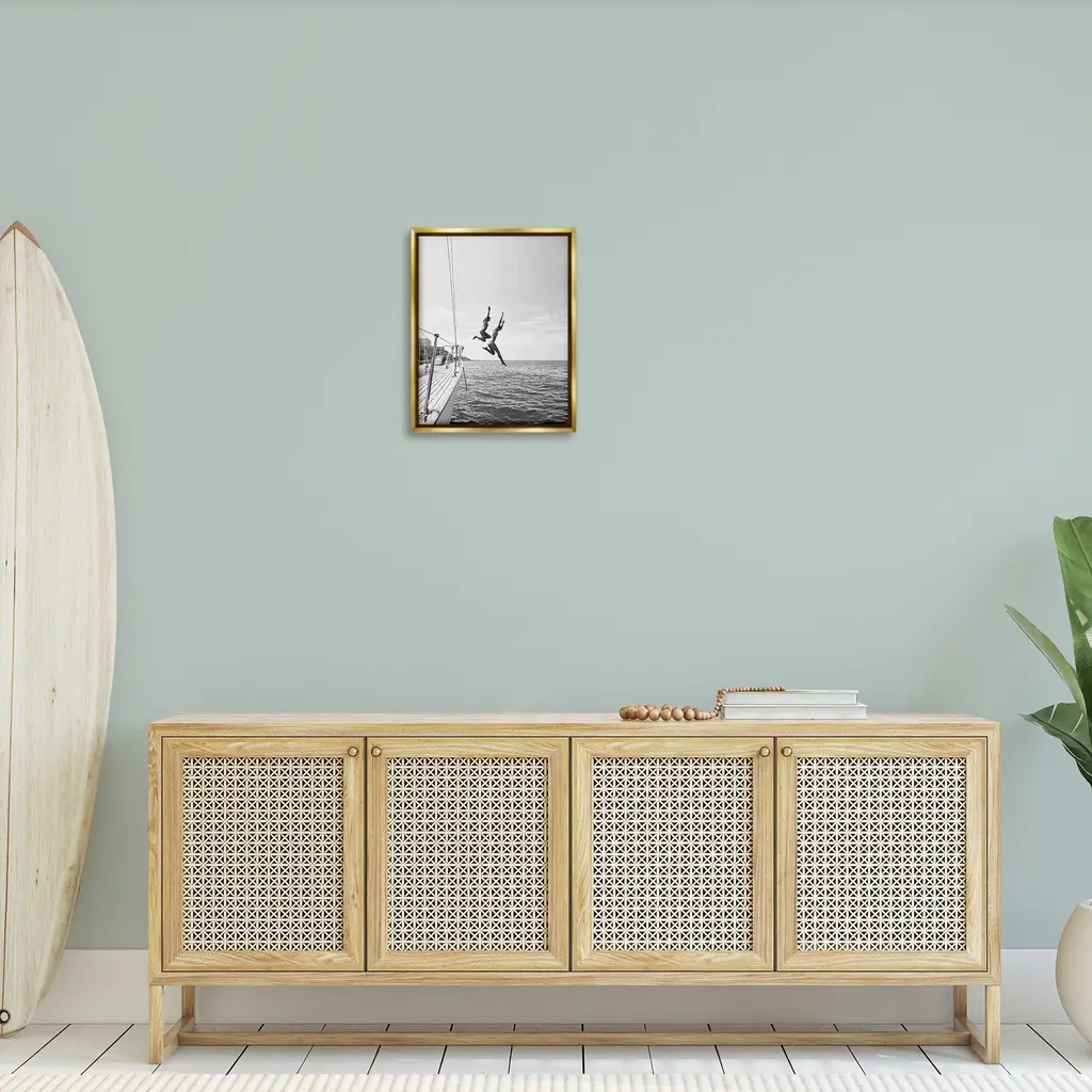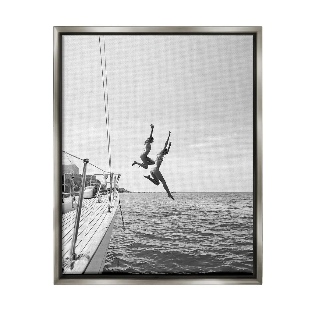 Elevate your home or office to the next level with Stupell Framed Floating Canvas Wall Art. Our premium hand-stretched canvas is mounted securely into a sturdy lightweight frame. The museum-style gap between the wrapped canvas and the box frame gives the illusion of floating artwork. Stupell Wall Art is made in the USA.Features: Dimensions: 17 x 1.7 x 21 Frame, 16 x 1.5 x 20 Canvas ArtFloating Frame Canvas Products are available in sizes 17"x21" and 25"x31". All Floating Frame Canvas Products have a 1.7" Depth.Wall Art is Ready to Hang with Hardware Free Hanging. No Installation required. For Easy Set Up Lean or Layer Artwork on Shelf or Against Wall. Artwork is Permently Fixed into the Frame.Our elevated 1.7" Thick Floating Frame is the perfect complement to our canvas style Wall Art. We use only the highest quality inks in house with industry leading printing solutions. Canvas is hand stretched over a durable wood foundation and then mounted securly into a Modern Box Frame. Made in the USA.Artwork Relates To: Water, Person, Diving, Swimming, People, Photography, Monochrome, Boat, NauticalDesign by Sisi and Seb