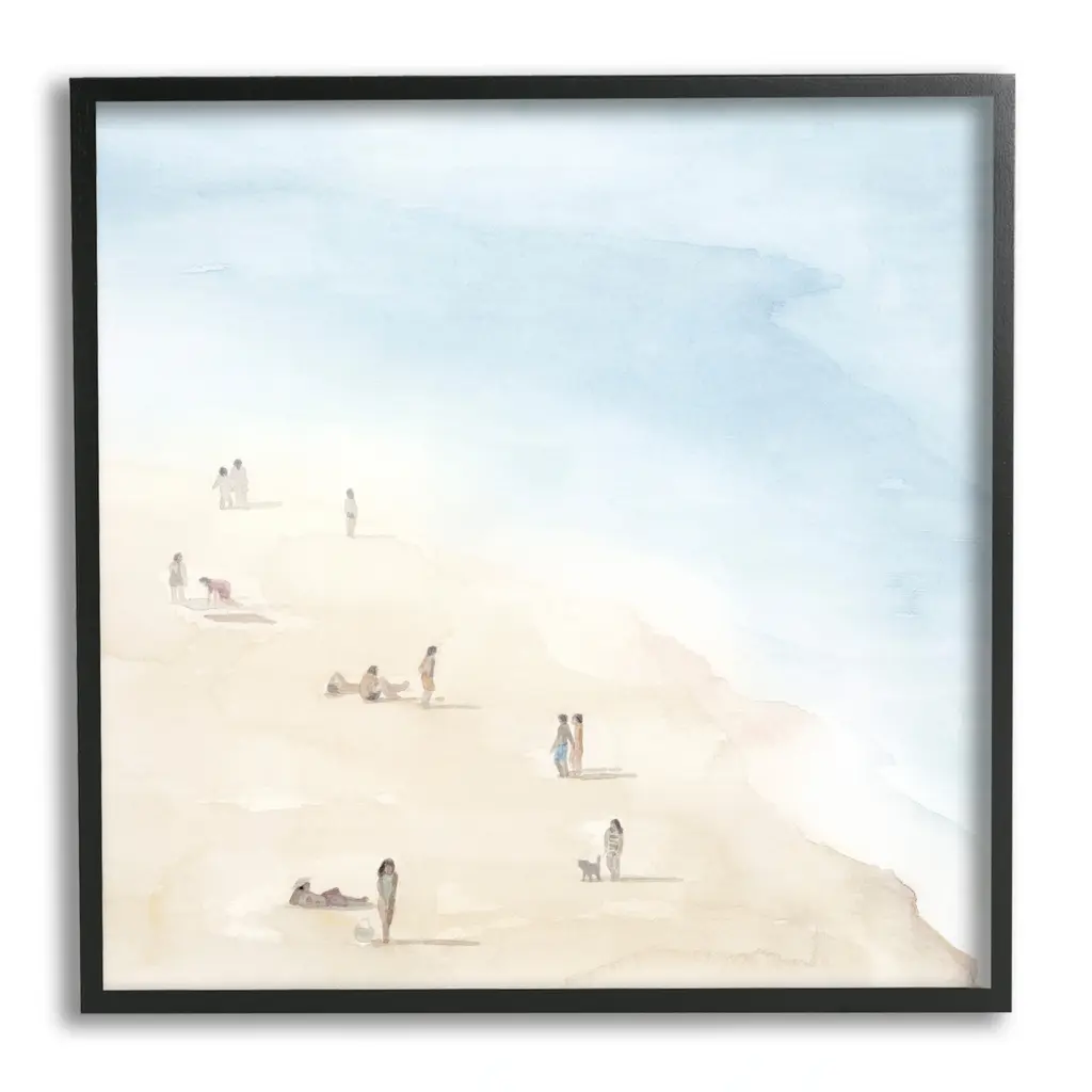 Stupell People Lounging At Beach Soft Blue Coastal Landscape Framed Wall Art - 17 X 17 - Grey