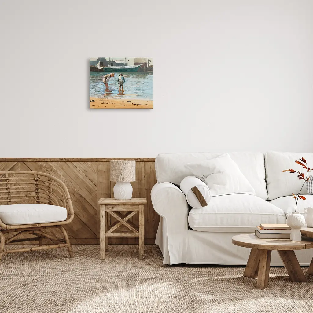 Stupell People Shoreline Beach Marina Searching Sea Life Canvas Wall Art, Design By Lettered And Lined - 20 X 16