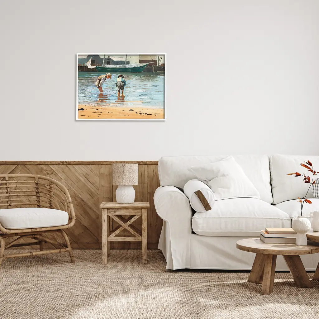 Stupell People Shoreline Beach Marina Searching Sea Life Framed Wall Art, Design By Lettered And Lined - Multi - 30 X 24 - White