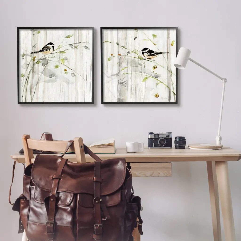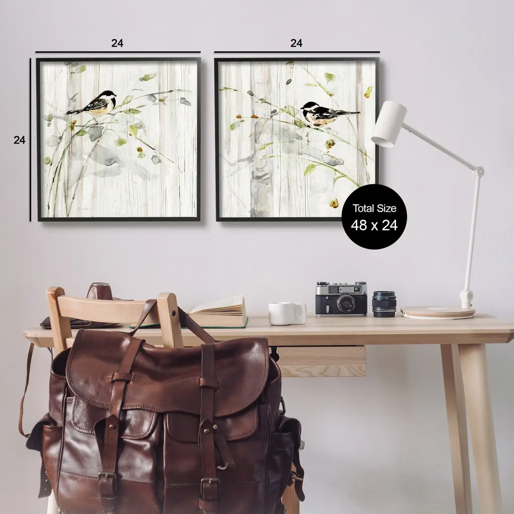 Fill any space in your home or office with our Framed Wall Art Sets. Our framed artwork is securely mounted into a 1.5-inch thick wood grain frame and ready to hang. Frames are available in three alluring styles: black, gray farmhouse and white. Stupell Wall Art is made in the USA.Features: Dimensions: 2 Piece Set, Each Panel is 12 x 1.5 x 12 FramedFramed Giclee Set Sizes Include Standard: 2pc, Each is 12 x 1.5 x 12 Large: 2pc, Each is 17 x 1.5 x 17 Oversized: 2pc, Each is 24 x 1.5 x 24Wall Art is Ready to Hang - No Installation or Hardware Needed. For Easy Set Up Lean or Layer Artwork on Shelf or Against Wall.Curated Wall Art Sets make it easy for you complete the theme for any room. Our giclée prints are carefully mounted on a durable MDF backing, and then perfectly finished in a 1.5 inch thick woodgrain frame. Mounted frame colors include black, gray farmhouse and white. Made In USA.Artwork Relates To: Bird, Botanical, Rustic, Country, Farmhouse, NatureDesign by Sally Swatland