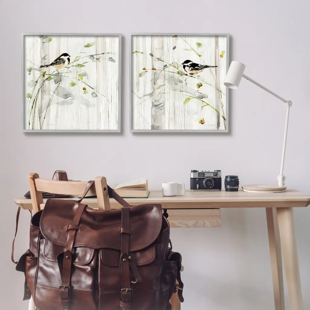 Fill any space in your home or office with our Framed Wall Art Sets. Our framed artwork is securely mounted into a 1.5-inch thick wood grain frame and ready to hang. Frames are available in three alluring styles: black, gray farmhouse and white. Stupell Wall Art is made in the USA.Features: Dimensions: 2 Piece Set, Each Panel is 12 x 1.5 x 12 FramedFramed Giclee Set Sizes Include Standard: 2pc, Each is 12 x 1.5 x 12 Large: 2pc, Each is 17 x 1.5 x 17 Oversized: 2pc, Each is 24 x 1.5 x 24Wall Art is Ready to Hang - No Installation or Hardware Needed. For Easy Set Up Lean or Layer Artwork on Shelf or Against Wall.Curated Wall Art Sets make it easy for you complete the theme for any room. Our giclée prints are carefully mounted on a durable MDF backing, and then perfectly finished in a 1.5 inch thick woodgrain frame. Mounted frame colors include black, gray farmhouse and white. Made In USA.Artwork Relates To: Bird, Botanical, Rustic, Country, Farmhouse, NatureDesign by Sally Swatland