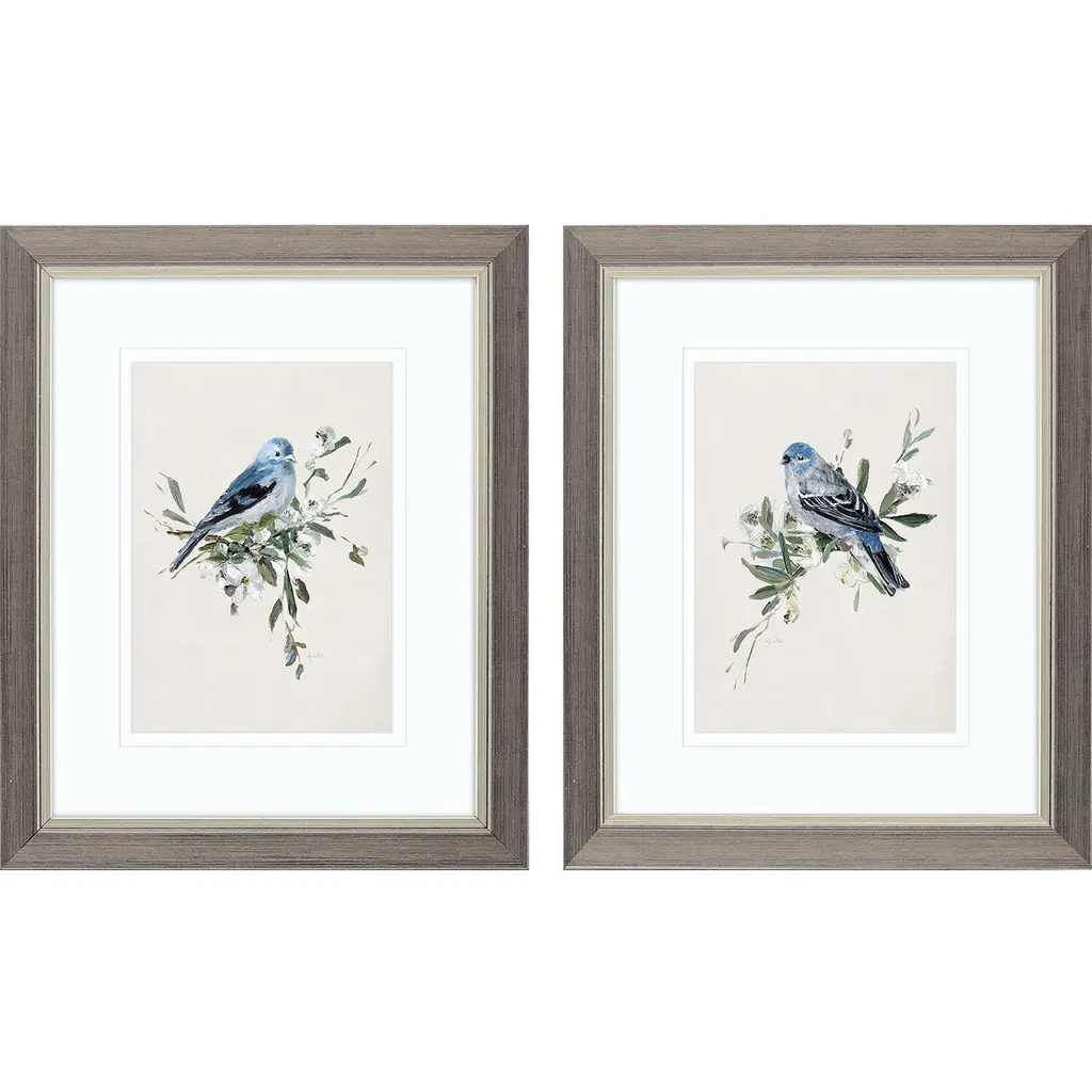 Stupell Perched Birds Country Botanicals 2 Piece Framed Giclee Art Set By Sally Swatland - 24 X 24 - Grey
