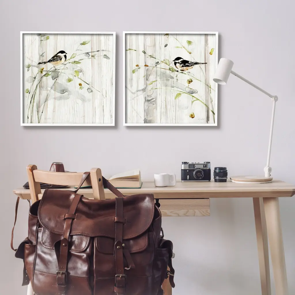 Fill any space in your home or office with our Framed Wall Art Sets. Our framed artwork is securely mounted into a 1.5-inch thick wood grain frame and ready to hang. Frames are available in three alluring styles: black, gray farmhouse and white. Stupell Wall Art is made in the USA.Features: Dimensions: 2 Piece Set, Each Panel is 12 x 1.5 x 12 FramedFramed Giclee Set Sizes Include Standard: 2pc, Each is 12 x 1.5 x 12 Large: 2pc, Each is 17 x 1.5 x 17 Oversized: 2pc, Each is 24 x 1.5 x 24Wall Art is Ready to Hang - No Installation or Hardware Needed. For Easy Set Up Lean or Layer Artwork on Shelf or Against Wall.Curated Wall Art Sets make it easy for you complete the theme for any room. Our giclée prints are carefully mounted on a durable MDF backing, and then perfectly finished in a 1.5 inch thick woodgrain frame. Mounted frame colors include black, gray farmhouse and white. Made In USA.Artwork Relates To: Bird, Botanical, Rustic, Country, Farmhouse, NatureDesign by Sally Swatland