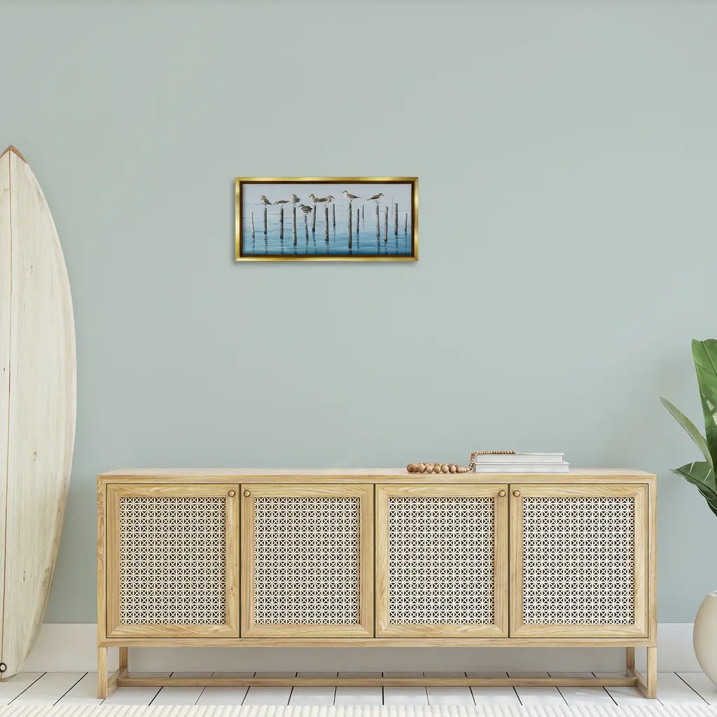 Stupell Perched Sea Birds Framed Floater Canvas Wall Art Design By Max Maxx - 25 X 11 - Gold