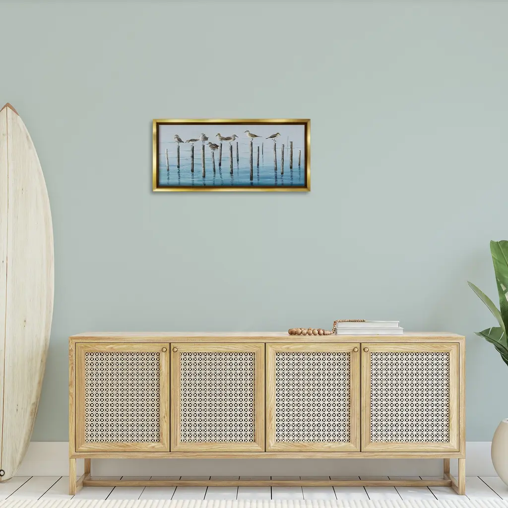 Elevate your home or office to the next level with Stupell Framed Floating Canvas Wall Art. Our premium hand-stretched canvas is mounted securely into a sturdy lightweight frame. The museum-style gap between the wrapped canvas and the box frame gives the illusion of floating artwork. Stupell Wall Art is made in the USA.Features: Dimensions: 25 x 1.7 x 11 Frame, 24 x 1.5 x 10 Canvas ArtFloating Frame Canvas Products are available in sizes 25"x11" and 31"x14". All Floating Frame Canvas Products have a 1.7" Depth.Wall Art is Ready to Hang with Hardware Free Hanging. No Installation required. For Easy Set Up Lean or Layer Artwork on Shelf or Against Wall. Artwork is Permently Fixed into the Frame.Our elevated 1.7" Thick Floating Frame is the perfect complement to our canvas style Wall Art. We use only the highest quality inks in house with industry leading printing solutions. Canvas is hand stretched over a durable wood foundation and then mounted securly into a Modern Box Frame. Made in the USA.Artwork Relates To: Animal, Bird, Nature, Water, Beak, Seagull, Waterfowl, Sandpiper, Ocean, Sea, LakeDesign by Max Maxx