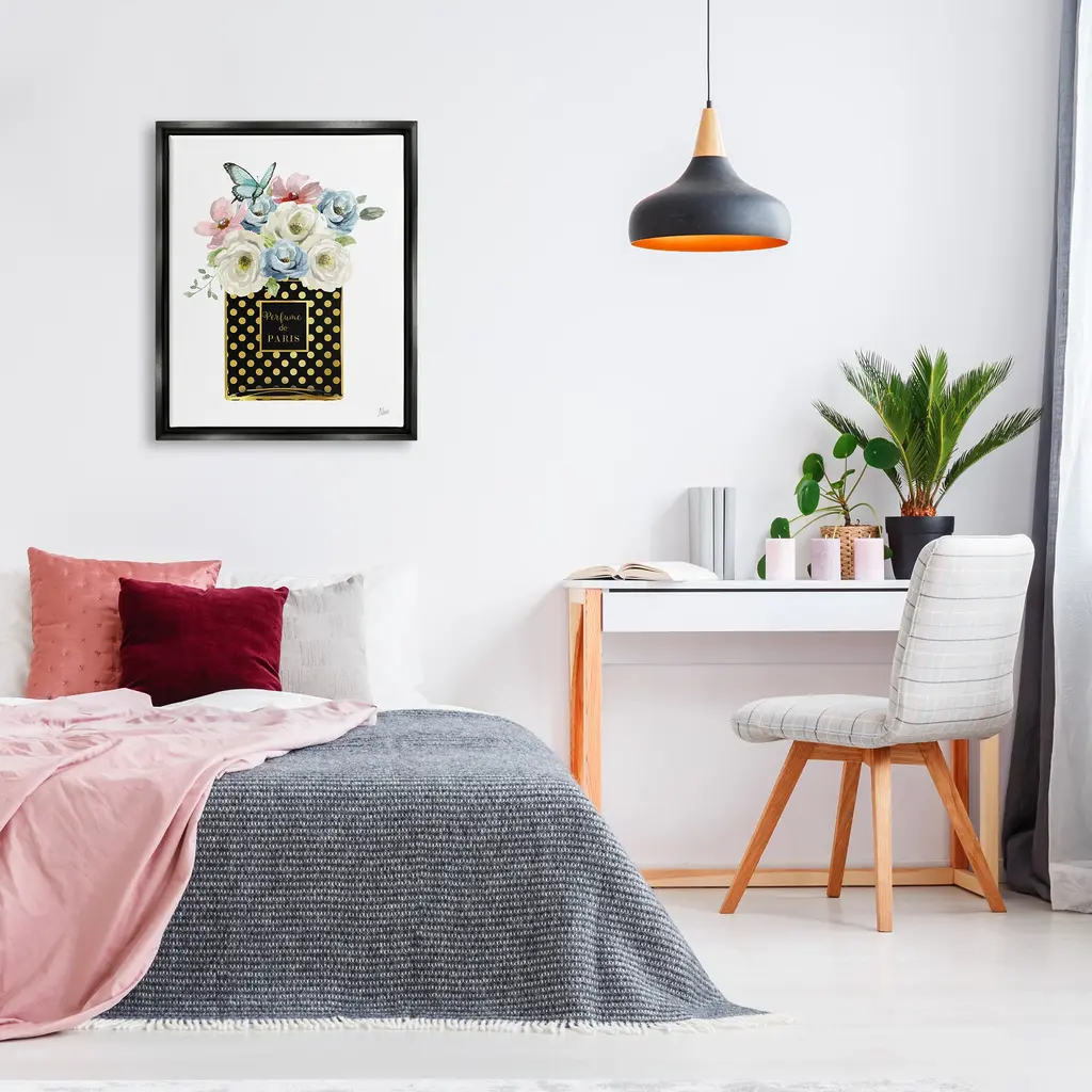 Stupell Perfume De Paris Flower Bouquet Framed Floater Canvas Wall Art By Nan - 24 X 30 - Black