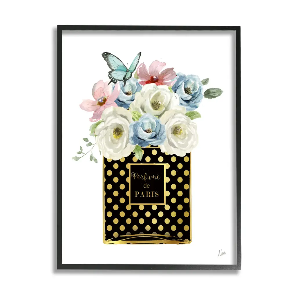 Add dimension to any room with our textured Framed Giclee Artwork. Our framed artwork is securely mounted into a 1.5-inch thick wood grain frame and ready to hang. Frames are available in three alluring styles: black, gray farmhouse and white. In addition, you should check out our oversized options if you want a statement piece. Stupell Wall Art is made in the USA.Features: Dimensions: 11 x 1.5 x 14 FramedFramed Giclee Sizes Include Standard: 11 x 1.5 x 14 Large: 16 x 1.5 x 20 Oversized: 24 x 1.5 x 30Wall Art is Ready to Hang - No Installation or Hardware Needed. For Easy Set Up Lean or Layer Artwork on Shelf or Against Wall.Our giclée prints are carefully mounted on a durable MDF backing, and then perfectly finished in a 1.5 inch thick woodgrain frame. Mounted frame colors include black, gray farmhouse and white. Made In USA.Artwork Relates To: Floral, Flower, Plant, Rose, Flower Arrangement, Flower Bouquet, Butterfly, Perfume de ParisDesign by Nan