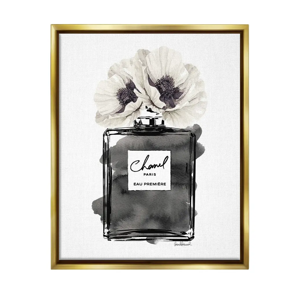 Elevate your home or office to the next level with Stupell Framed Floating Canvas Wall Art. Our premium hand-stretched canvas is mounted securely into a sturdy lightweight frame. The museum-style gap between the wrapped canvas and the box frame gives the illusion of floating artwork. Stupell Wall Art is made in the USA.Features: Dimensions: 17 x 1.7 x 21 Frame, 16 x 1.5 x 20 Canvas ArtFloating Frame Canvas Products are available in sizes 17"x21" and 25"x31". All Floating Frame Canvas Products have a 1.7" Depth.Wall Art is Ready to Hang with Hardware Free Hanging. No Installation required. For Easy Set Up Lean or Layer Artwork on Shelf or Against Wall. Artwork is Permently Fixed into the Frame.Our elevated 1.7" Thick Floating Frame is the perfect complement to our canvas style Wall Art. We use only the highest quality inks in house with industry leading printing solutions. Canvas is hand stretched over a durable wood foundation and then mounted securly into a Modern Box Frame. Made in the USA.Artwork Relates To: Glam, Fashion, Perfume, Flower, Floral, Modern, PoppyDesign by Amanda Greenwood