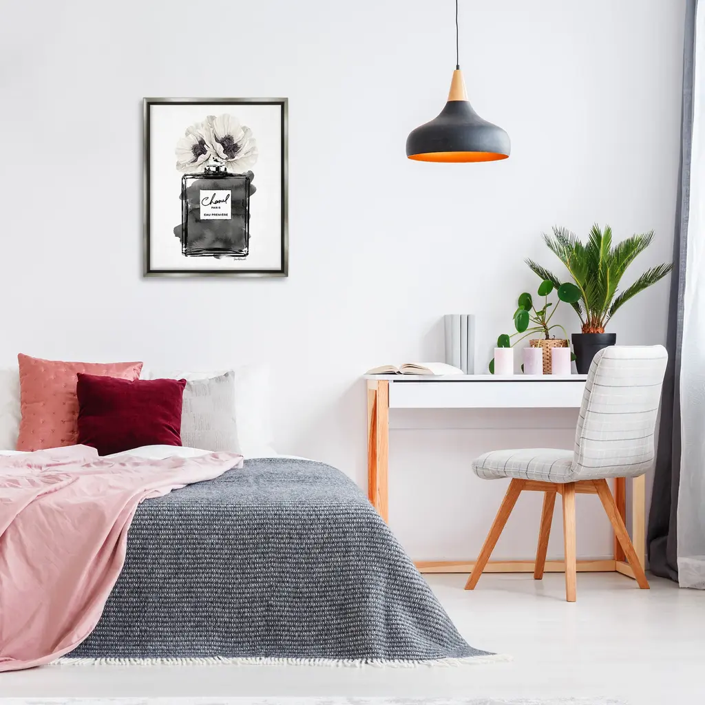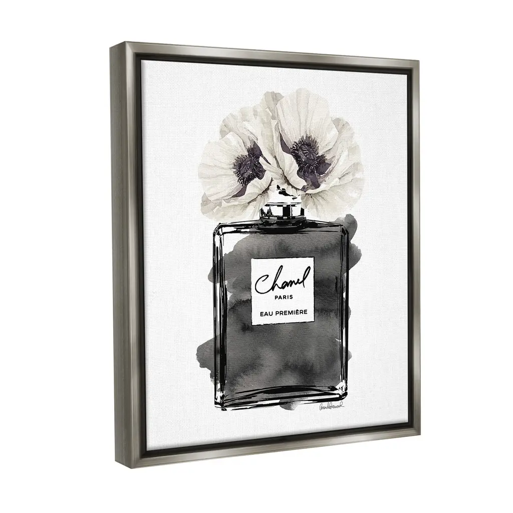 Elevate your home or office to the next level with Stupell Framed Floating Canvas Wall Art. Our premium hand-stretched canvas is mounted securely into a sturdy lightweight frame. The museum-style gap between the wrapped canvas and the box frame gives the illusion of floating artwork. Stupell Wall Art is made in the USA.Features: Dimensions: 17 x 1.7 x 21 Frame, 16 x 1.5 x 20 Canvas ArtFloating Frame Canvas Products are available in sizes 17"x21" and 25"x31". All Floating Frame Canvas Products have a 1.7" Depth.Wall Art is Ready to Hang with Hardware Free Hanging. No Installation required. For Easy Set Up Lean or Layer Artwork on Shelf or Against Wall. Artwork is Permently Fixed into the Frame.Our elevated 1.7" Thick Floating Frame is the perfect complement to our canvas style Wall Art. We use only the highest quality inks in house with industry leading printing solutions. Canvas is hand stretched over a durable wood foundation and then mounted securly into a Modern Box Frame. Made in the USA.Artwork Relates To: Glam, Fashion, Perfume, Flower, Floral, Modern, PoppyDesign by Amanda Greenwood