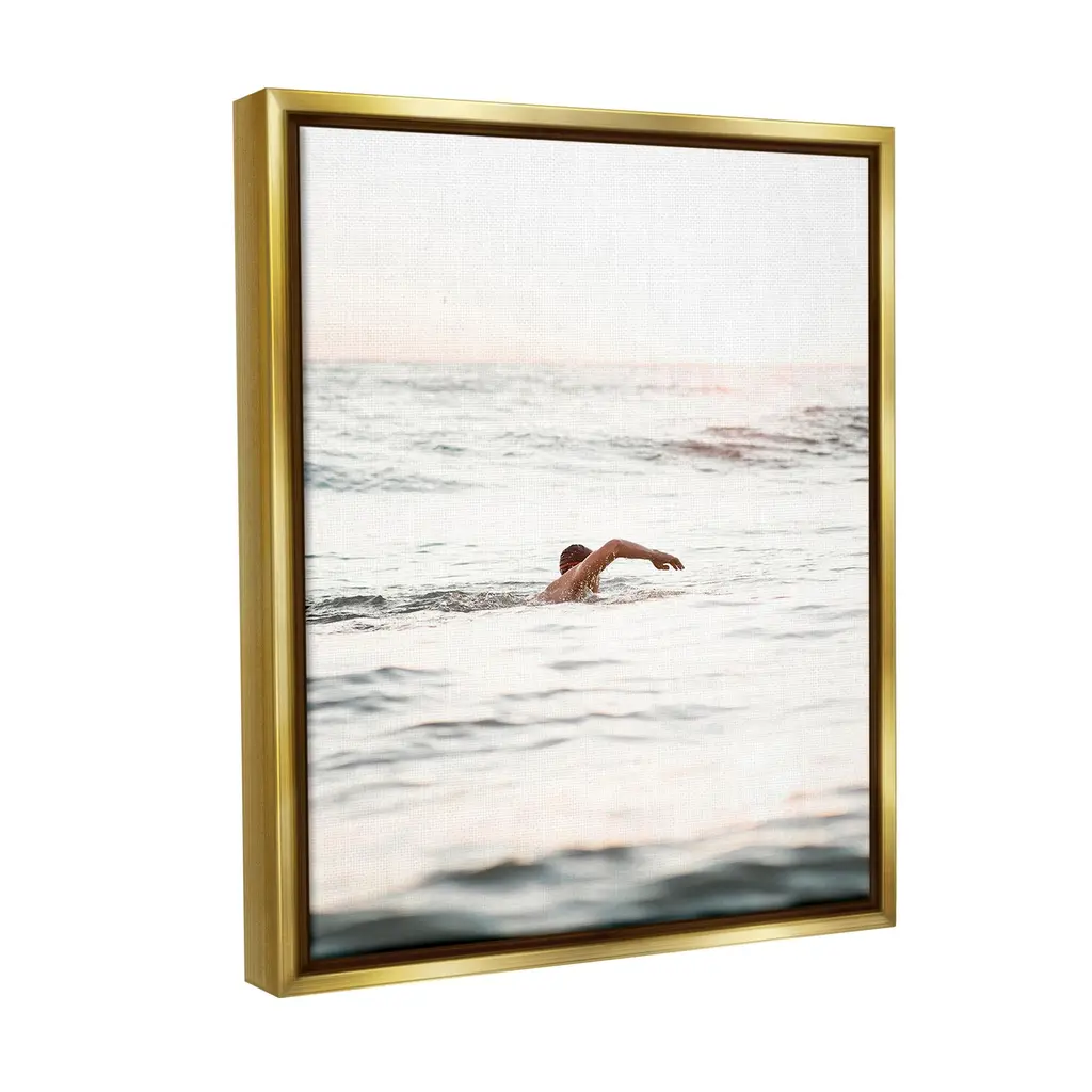 Elevate your home or office to the next level with Stupell Framed Floating Canvas Wall Art. Our premium hand-stretched canvas is mounted securely into a sturdy lightweight frame. The museum-style gap between the wrapped canvas and the box frame gives the illusion of floating artwork. Stupell Wall Art is made in the USA.Features: Dimensions: 17 x 1.7 x 21 Frame, 16 x 1.5 x 20 Canvas ArtFloating Frame Canvas Products are available in sizes 17"x21" and 25"x31". All Floating Frame Canvas Products have a 1.7" Depth.Wall Art is Ready to Hang with Hardware Free Hanging. No Installation required. For Easy Set Up Lean or Layer Artwork on Shelf or Against Wall. Artwork is Permently Fixed into the Frame.Our elevated 1.7" Thick Floating Frame is the perfect complement to our canvas style Wall Art. We use only the highest quality inks in house with industry leading printing solutions. Canvas is hand stretched over a durable wood foundation and then mounted securly into a Modern Box Frame. Made in the USA.Artwork Relates To: Water, Person, Diving, Swimming, Photography, Dock, Lake, BeachDesign by Lil' Rue
