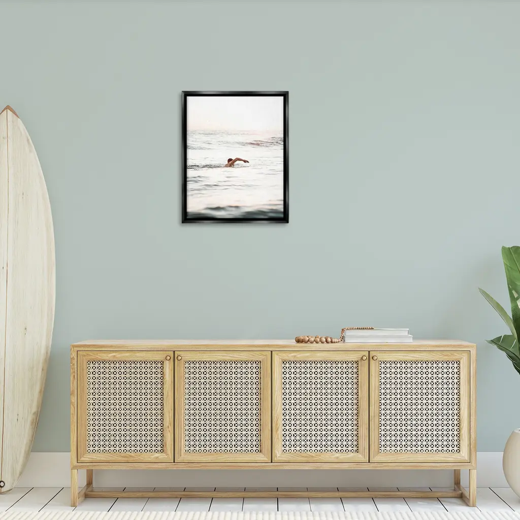 Elevate your home or office to the next level with Stupell Framed Floating Canvas Wall Art. Our premium hand-stretched canvas is mounted securely into a sturdy lightweight frame. The museum-style gap between the wrapped canvas and the box frame gives the illusion of floating artwork. Stupell Wall Art is made in the USA.Features: Dimensions: 17 x 1.7 x 21 Frame, 16 x 1.5 x 20 Canvas ArtFloating Frame Canvas Products are available in sizes 17"x21" and 25"x31". All Floating Frame Canvas Products have a 1.7" Depth.Wall Art is Ready to Hang with Hardware Free Hanging. No Installation required. For Easy Set Up Lean or Layer Artwork on Shelf or Against Wall. Artwork is Permently Fixed into the Frame.Our elevated 1.7" Thick Floating Frame is the perfect complement to our canvas style Wall Art. We use only the highest quality inks in house with industry leading printing solutions. Canvas is hand stretched over a durable wood foundation and then mounted securly into a Modern Box Frame. Made in the USA.Artwork Relates To: Water, Person, Diving, Swimming, Photography, Dock, Lake, BeachDesign by Lil' Rue