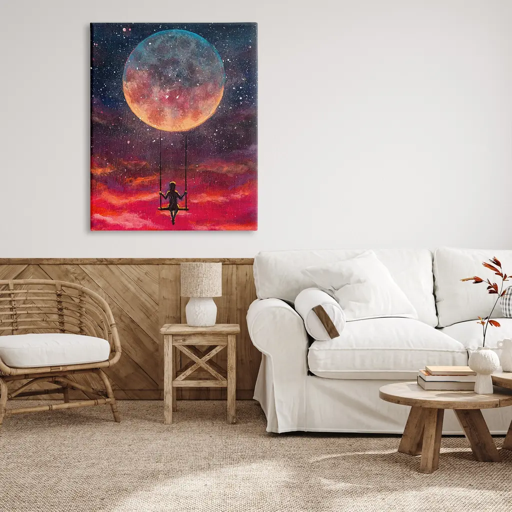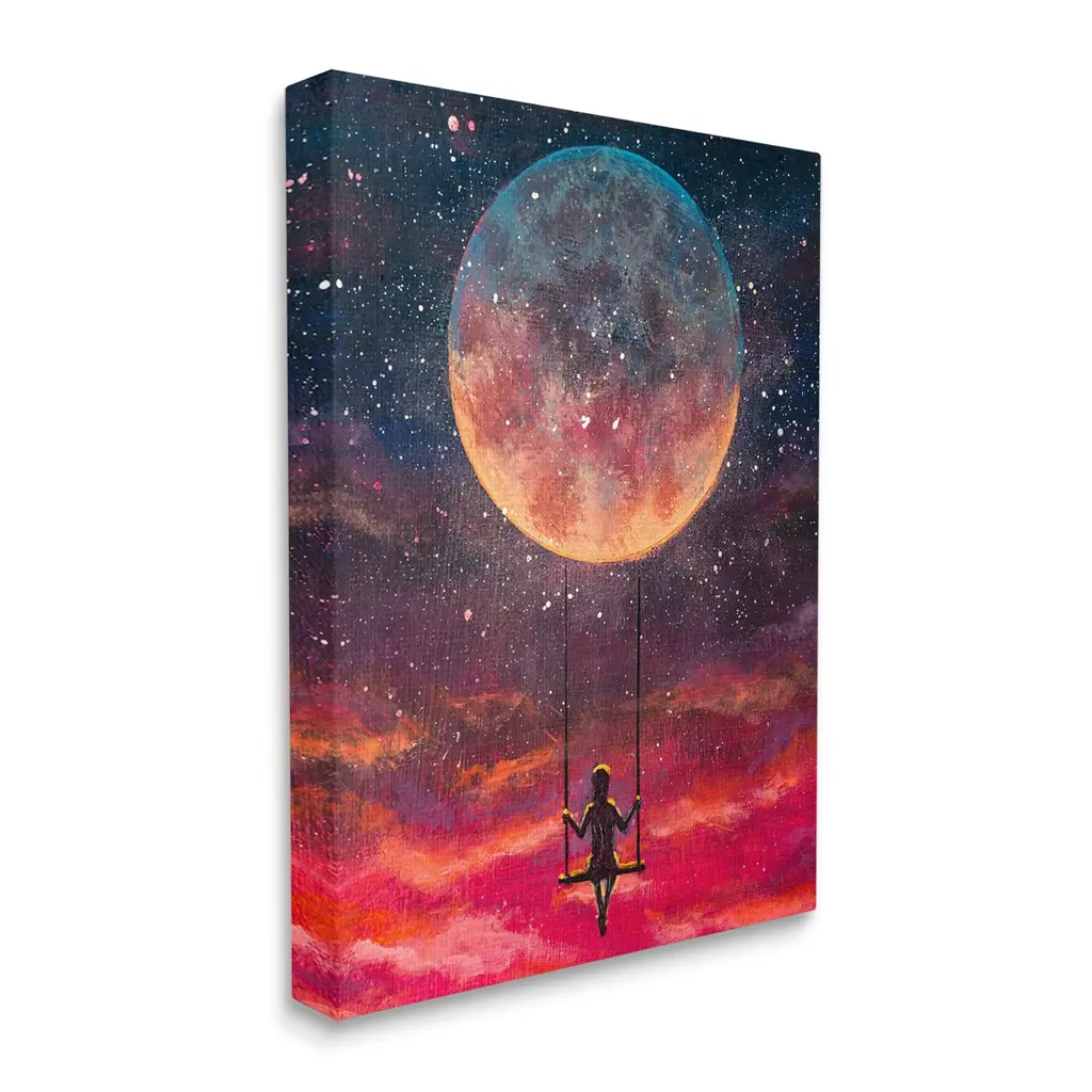 We create our stretched canvas to the highest standards. Using only the highest quality inks and canvas on Mimaki printers, we hand-cut and stretch each piece over a 1.5-inch thick wooden frame for hanging. As a result, the art comes ready to hang on the sturdy ledge with no installation required. Stupell Wall Art is made in the USA.Features: Dimensions: 16 x 1.5 x 20 InchesStretched Canvas Sizes Include Standard: 16 x 1.5 x 20 Large: 20 x 1.5 x 30 X-Large: 30 x 1.5 x 40 Oversized: 36 x 1.5 x 48Wall Art is Ready to Hang with Hardware Free Hanging. No installation required. For Easy Set Up Lean or Layer Artwork on Shelf or Against Wall.Our stretched canvas is created with the highest standards. We use only the highest quality inks and canvas on our in house Mimaki printers, and then hand cut and stretch each piece over a 1.5 inch thick wooden frame for hanging. Made In USA.Artwork Relates To: Nature, Night, Outdoors, Person, Astronomy, Moon, Outer Space, ModernDesign by Valery Rybakow