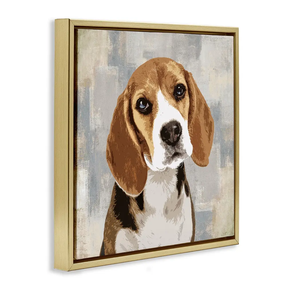 Elevate your home or office to the next level with Stupell Framed Floating Canvas Wall Art. Our premium hand-stretched canvas is mounted securely into a sturdy lightweight frame. The museum-style gap between the wrapped canvas and the box frame gives the illusion of floating artwork. Stupell Wall Art is made in the USA.Features: Dimensions: 18 x 1.7 x 18 Frame, 17 x 1.5 x 17 Canvas ArtFloating Frame Canvas Products are available in sizes 18"x18" and 25"x25". All Floating Frame Canvas Products have a 1.7" Depth.Wall Art is Ready to Hang with Hardware Free Hanging. No Installation required. For Easy Set Up Lean or Layer Artwork on Shelf or Against Wall. Artwork is Permently Fixed into the Frame.Our elevated 1.7" Thick Floating Frame is the perfect complement to our canvas style Wall Art. We use only the highest quality inks in house with industry leading printing solutions. Canvas is hand stretched over a durable wood foundation and then mounted securly into a Modern Box Frame. Made in the USA.Artwork Relates To: Animal, Pet, Dog, Portrait, Painting, Beagle, AbstractDesign by Keri Rodgers