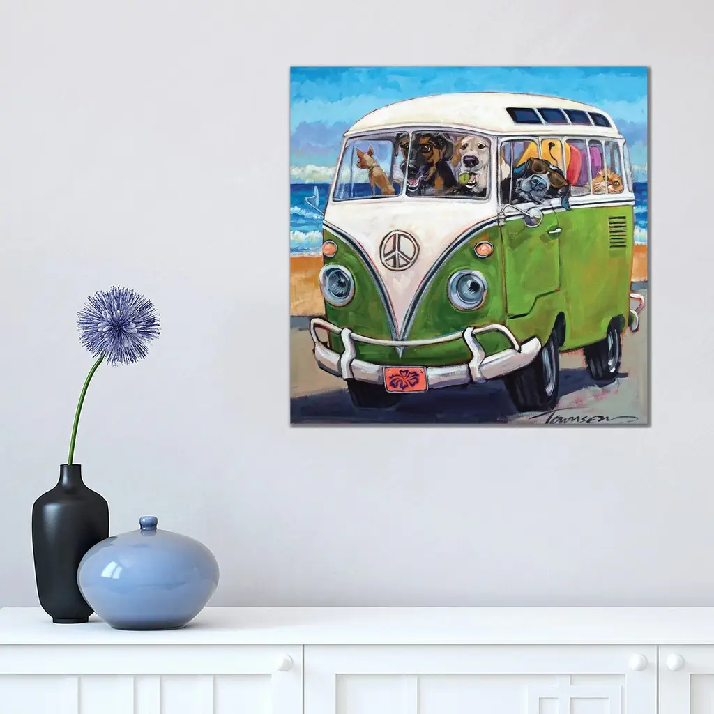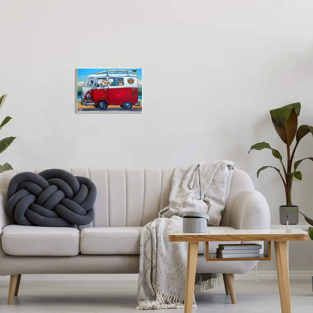 Our wall plaques start as high-quality lithograph prints mounted on durable 0.5-inch thick MDF wood. Each piece is hand finished and comes with a fresh layer of white foil on the sides to give it a crisp, clean look. Plaques arrive ready to hang without installation and come with removable plastic corners to keep them from damage in transit. Stupell Wall Art is made in the USA.Features: Dimensions: 15 x 0.5 x 10 InchesWall Plaque Sizes Include Standard: 15 x 0.5 x 10 Oversized: 19 x 0.5 x 13Wall Art is Ready to Hang with Hardware Free Hanging. No installation required. For Easy Set Up Lean or Layer Artwork on Shelf or Against Wall.All of our wall plaques start off as high quality lithograph prints that are then mounted on durable 0.5 inch thick MDF wood. Each piece is hand finished and comes with a fresh layer of foil on the sides to give it a crisp clean look. Made In USA.Artwork Relates To: Caravan, Transportation, Van, Vehicle, Painting, Animal, Cat, Mammal, Pet, Canine, Dog, Minibus, Summer, SurfboardDesign by CR Townsend
