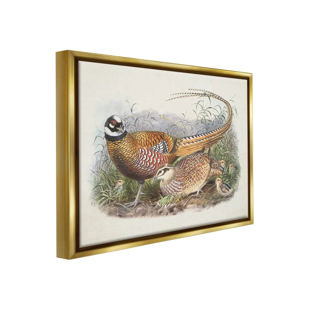 Stupell Pheasant Family In Nature Framed Floater Canvas Wall Art Design By Wild Apple Portfolio - 21 X 17 - Gold