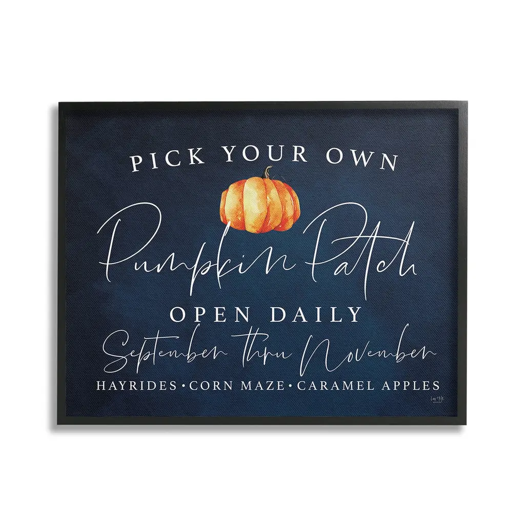Add dimension to any room with our textured Framed Giclee Artwork. Our framed artwork is securely mounted into a 1.5-inch thick wood grain frame and ready to hang. Frames are available in three alluring styles: black, gray farmhouse and white. In addition, you should check out our oversized options if you want a statement piece. Stupell Wall Art is made in the USA.Features: Dimensions: 14 x 1.5 x 11 FramedFramed Giclee Products are available in the sizes 14"x11", 20"x16" or 30"x24". All Framed Giclee Products have a 1.5" Depth. Wall Art is Ready to Hang with Hardware Free Hanging. No installation required. For Easy Set Up Lean or Layer Artwork on Shelf or Against Wall.Our giclée prints are carefully mounted on a durable MDF backing, and then perfectly finished in a 1.5 inch thick woodgrain frame. Mounted frame colors include black, gray farmhouse and white. Made In USA.Artwork Relates To: Fall, Autumn, Harvest, Garden, Patch, Country, Pick Your Own, Pumpkin PatchDesign by Lux + Me Designs