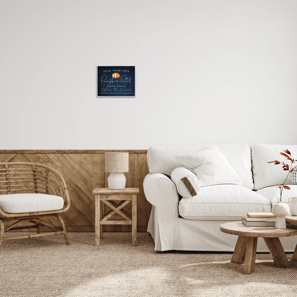 Add dimension to any room with our textured Framed Giclee Artwork. Our framed artwork is securely mounted into a 1.5-inch thick wood grain frame and ready to hang. Frames are available in three alluring styles: black, gray farmhouse and white. In addition, you should check out our oversized options if you want a statement piece. Stupell Wall Art is made in the USA.Features: Dimensions: 14 x 1.5 x 11 FramedFramed Giclee Products are available in the sizes 14"x11", 20"x16" or 30"x24". All Framed Giclee Products have a 1.5" Depth. Wall Art is Ready to Hang with Hardware Free Hanging. No installation required. For Easy Set Up Lean or Layer Artwork on Shelf or Against Wall.Our giclée prints are carefully mounted on a durable MDF backing, and then perfectly finished in a 1.5 inch thick woodgrain frame. Mounted frame colors include black, gray farmhouse and white. Made In USA.Artwork Relates To: Fall, Autumn, Harvest, Garden, Patch, Country, Pick Your Own, Pumpkin PatchDesign by Lux + Me Designs