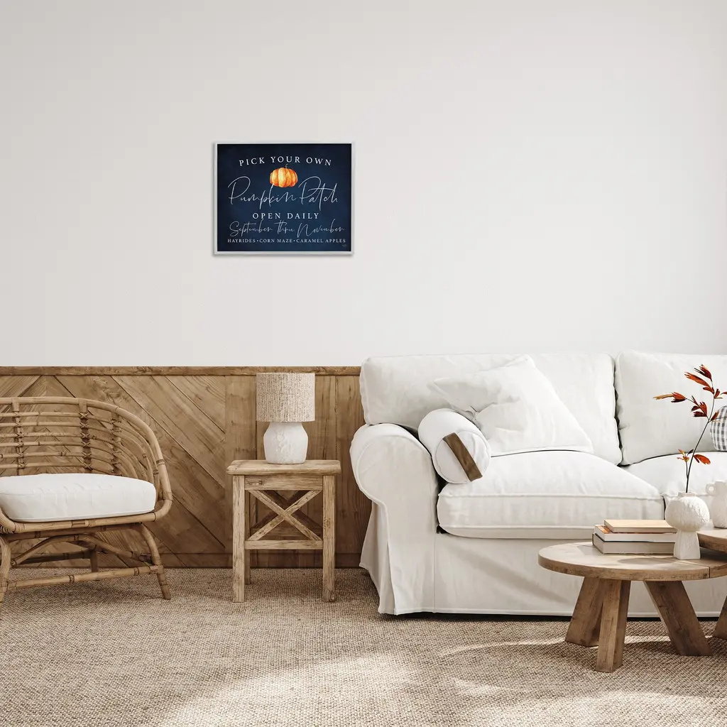 Add dimension to any room with our textured Framed Giclee Artwork. Our framed artwork is securely mounted into a 1.5-inch thick wood grain frame and ready to hang. Frames are available in three alluring styles: black, gray farmhouse and white. In addition, you should check out our oversized options if you want a statement piece. Stupell Wall Art is made in the USA.Features: Dimensions: 14 x 1.5 x 11 FramedFramed Giclee Products are available in the sizes 14"x11", 20"x16" or 30"x24". All Framed Giclee Products have a 1.5" Depth. Wall Art is Ready to Hang with Hardware Free Hanging. No installation required. For Easy Set Up Lean or Layer Artwork on Shelf or Against Wall.Our giclée prints are carefully mounted on a durable MDF backing, and then perfectly finished in a 1.5 inch thick woodgrain frame. Mounted frame colors include black, gray farmhouse and white. Made In USA.Artwork Relates To: Fall, Autumn, Harvest, Garden, Patch, Country, Pick Your Own, Pumpkin PatchDesign by Lux + Me Designs
