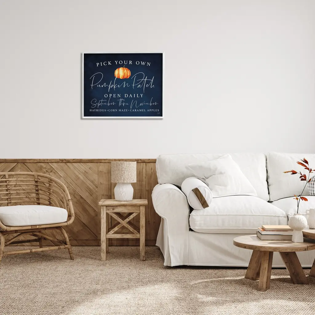 Add dimension to any room with our textured Framed Giclee Artwork. Our framed artwork is securely mounted into a 1.5-inch thick wood grain frame and ready to hang. Frames are available in three alluring styles: black, gray farmhouse and white. In addition, you should check out our oversized options if you want a statement piece. Stupell Wall Art is made in the USA.Features: Dimensions: 14 x 1.5 x 11 FramedFramed Giclee Products are available in the sizes 14"x11", 20"x16" or 30"x24". All Framed Giclee Products have a 1.5" Depth. Wall Art is Ready to Hang with Hardware Free Hanging. No installation required. For Easy Set Up Lean or Layer Artwork on Shelf or Against Wall.Our giclée prints are carefully mounted on a durable MDF backing, and then perfectly finished in a 1.5 inch thick woodgrain frame. Mounted frame colors include black, gray farmhouse and white. Made In USA.Artwork Relates To: Fall, Autumn, Harvest, Garden, Patch, Country, Pick Your Own, Pumpkin PatchDesign by Lux + Me Designs