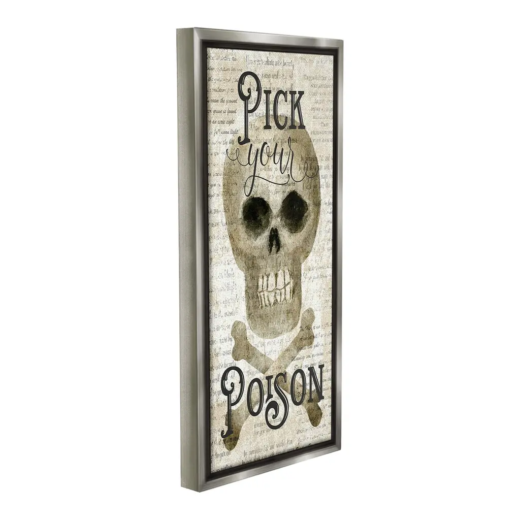 Stupell Pick Your Poison Skull Framed Floater Canvas Wall Art Design By Deane Beesley - 11 X 25 - Grey