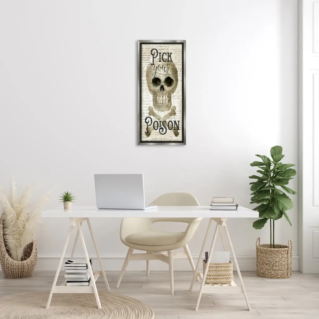 Stupell Pick Your Poison Skull Framed Floater Canvas Wall Art Design By Deane Beesley - 14 X 31 - Grey