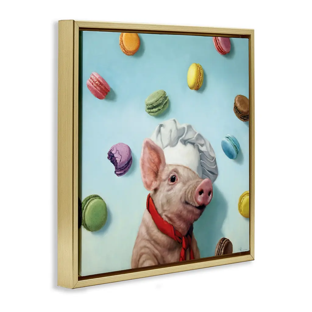 Elevate your home or office to the next level with Stupell Framed Floating Canvas Wall Art. Our premium hand-stretched canvas is mounted securely into a sturdy lightweight frame. The museum-style gap between the wrapped canvas and the box frame gives the illusion of floating artwork. Stupell Wall Art is made in the USA.Features: Dimensions: 18 x 1.7 x 18 Frame, 17 x 1.5 x 17 Canvas ArtFloating Frame Canvas Products are available in sizes 18"x18" and 25"x25". All Floating Frame Canvas Products have a 1.7" Depth.Wall Art is Ready to Hang with Hardware Free Hanging. No Installation required. For Easy Set Up Lean or Layer Artwork on Shelf or Against Wall. Artwork is Permently Fixed into the Frame.Our elevated 1.7" Thick Floating Frame is the perfect complement to our canvas style Wall Art. We use only the highest quality inks in house with industry leading printing solutions. Canvas is hand stretched over a durable wood foundation and then mounted securly into a Modern Box Frame. Made in the USA.Artwork Relates To: Kitchen, Humor, Animal, Macaron, Dessert, Pig, Chef, PatternDesign by Lucia Heffernan