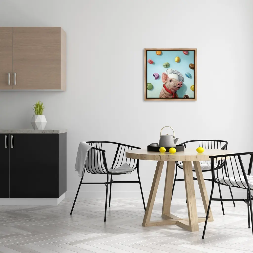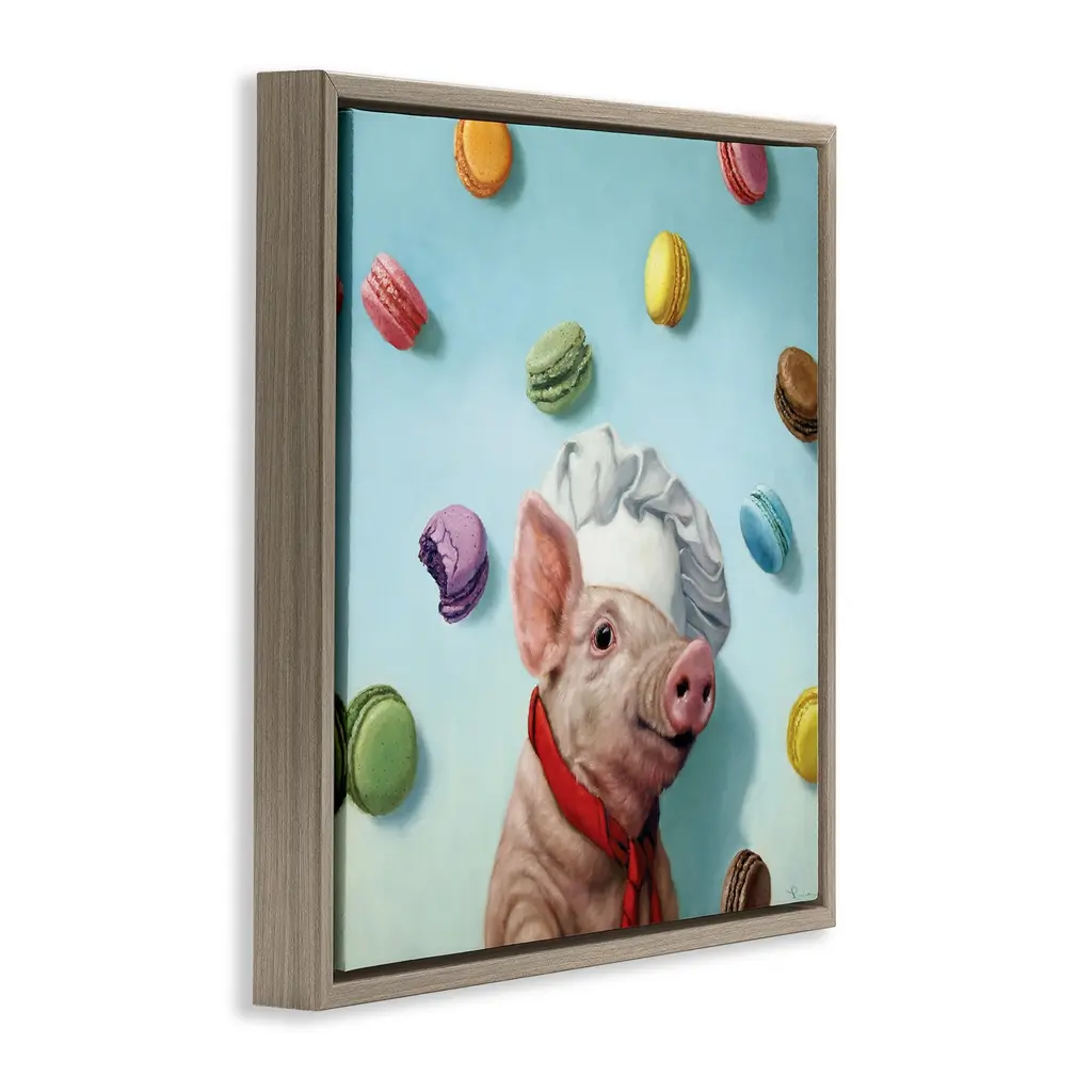 Elevate your home or office to the next level with Stupell Framed Floating Canvas Wall Art. Our premium hand-stretched canvas is mounted securely into a sturdy lightweight frame. The museum-style gap between the wrapped canvas and the box frame gives the illusion of floating artwork. Stupell Wall Art is made in the USA.Features: Dimensions: 18 x 1.7 x 18 Frame, 17 x 1.5 x 17 Canvas ArtFloating Frame Canvas Products are available in sizes 18"x18" and 25"x25". All Floating Frame Canvas Products have a 1.7" Depth.Wall Art is Ready to Hang with Hardware Free Hanging. No Installation required. For Easy Set Up Lean or Layer Artwork on Shelf or Against Wall. Artwork is Permently Fixed into the Frame.Our elevated 1.7" Thick Floating Frame is the perfect complement to our canvas style Wall Art. We use only the highest quality inks in house with industry leading printing solutions. Canvas is hand stretched over a durable wood foundation and then mounted securly into a Modern Box Frame. Made in the USA.Artwork Relates To: Kitchen, Humor, Animal, Macaron, Dessert, Pig, Chef, PatternDesign by Lucia Heffernan