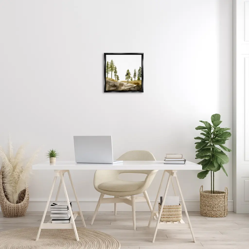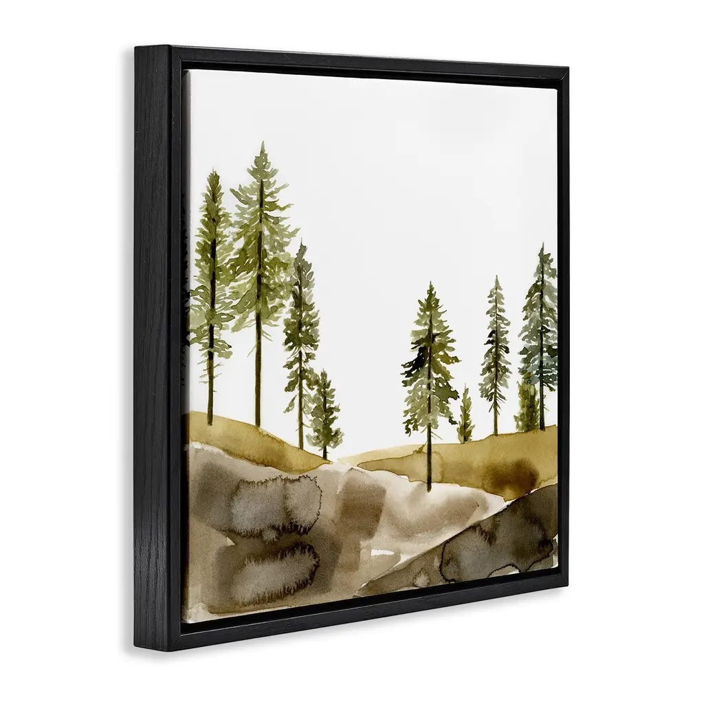 Elevate your home or office to the next level with Stupell Framed Floating Canvas Wall Art. Our premium hand-stretched canvas is mounted securely into a sturdy lightweight frame. The museum-style gap between the wrapped canvas and the box frame gives the illusion of floating artwork. Stupell Wall Art is made in the USA.Features: Dimensions: 18 x 1.7 x 18 Frame, 17 x 1.5 x 17 Canvas ArtFloating Frame Canvas Products are available in sizes 18"x18" and 25"x25". All Floating Frame Canvas Products have a 1.7" Depth.Wall Art is Ready to Hang with Hardware Free Hanging. No Installation required. For Easy Set Up Lean or Layer Artwork on Shelf or Against Wall. Artwork is Permently Fixed into the Frame.Our elevated 1.7" Thick Floating Frame is the perfect complement to our canvas style Wall Art. We use only the highest quality inks in house with industry leading printing solutions. Canvas is hand stretched over a durable wood foundation and then mounted securly into a Modern Box Frame. Made in the USA.Artwork Relates To: Landscape, Woodland, Pine, Trees, Nature, AbstractDesign by Jacob Green