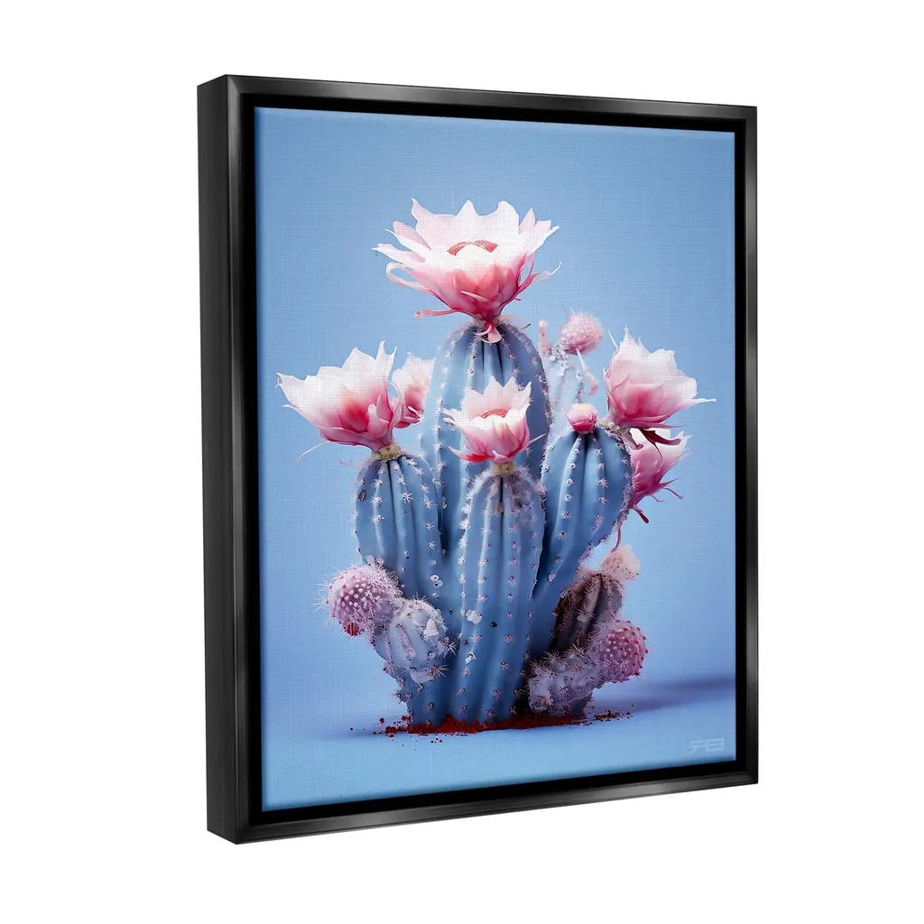 Stupell Pink & Blue Cactus Flowers Framed Floater Canvas Wall Art Design By Rb - 25 X 31 - Black