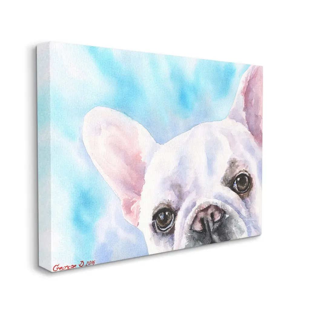 We create our stretched canvas to the highest standards. Using only the highest quality inks and canvas on Mimaki printers, we hand-cut and stretch each piece over a 1.5-inch thick wooden frame for hanging. As a result, the art comes ready to hang on the sturdy ledge with no installation required. Stupell Wall Art is made in the USA.Features: Dimensions: 16 x 1.5 x 20 InchesStretched Canvas Sizes Include Standard: 16 x 1.5 x 20 Large: 20 x 1.5 x 30 X-Large: 30 x 1.5 x 40 Oversized: 36 x 1.5 x 48Wall Art is Ready to Hang with Hardware Free Hanging. No installation required. For Easy Set Up Lean or Layer Artwork on Shelf or Against Wall.Our stretched canvas is created with the highest standards. We use only the highest quality inks and canvas on our in house Mimaki printers, and then hand cut and stretch each piece over a 1.5 inch thick wooden frame for hanging. Made In USA.Artwork Relates To: Animal, Canine, Mammal, Pet, Painting, Dog, GlassesDesign by Rachel Nieman