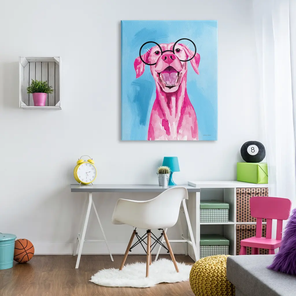 Stupell Pink & Blue Happy Dog Canvas Wall Art Design By Rachel Nieman - 36 X 48