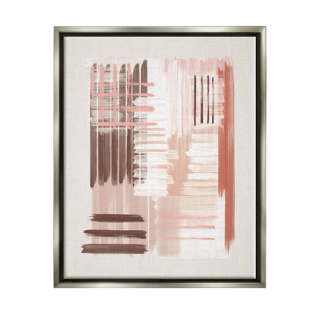 Stupell Pink & Brown Abstract Lines Framed Giclee Art Design By Jj Design House Llc - 11 X 14 - Grey