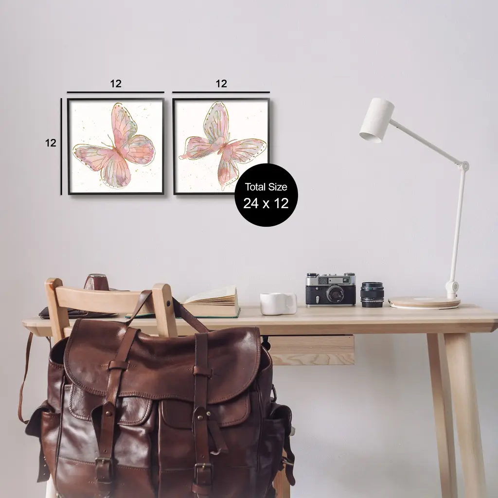 Fill any space in your home or office with our Framed Wall Art Sets. Our framed artwork is securely mounted into a 1.5-inch thick wood grain frame and ready to hang. Frames are available in three alluring styles: black, gray farmhouse and white. Stupell Wall Art is made in the USA.Features: Dimensions: 2 Piece Set, Each Panel is 12 x 1.5 x 12 FramedFramed Giclee Set Sizes Include Standard: 2pc, Each is 12 x 1.5 x 12 Large: 2pc, Each is 17 x 1.5 x 17 Oversized: 2pc, Each is 24 x 1.5 x 24Wall Art is Ready to Hang - No Installation or Hardware Needed. For Easy Set Up Lean or Layer Artwork on Shelf or Against Wall.Curated Wall Art Sets make it easy for you complete the theme for any room. Our giclée prints are carefully mounted on a durable MDF backing, and then perfectly finished in a 1.5 inch thick woodgrain frame. Mounted frame colors include black, gray farmhouse and white. Made In USA.Artwork Relates To: Butterfly, Animal, Insect, PinkDesign by Nan