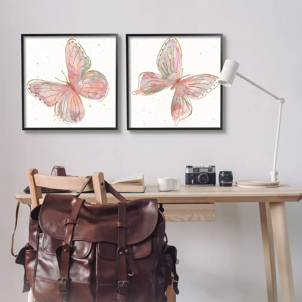 Fill any space in your home or office with our Framed Wall Art Sets. Our framed artwork is securely mounted into a 1.5-inch thick wood grain frame and ready to hang. Frames are available in three alluring styles: black, gray farmhouse and white. Stupell Wall Art is made in the USA.Features: Dimensions: 2 Piece Set, Each Panel is 12 x 1.5 x 12 FramedFramed Giclee Set Sizes Include Standard: 2pc, Each is 12 x 1.5 x 12 Large: 2pc, Each is 17 x 1.5 x 17 Oversized: 2pc, Each is 24 x 1.5 x 24Wall Art is Ready to Hang - No Installation or Hardware Needed. For Easy Set Up Lean or Layer Artwork on Shelf or Against Wall.Curated Wall Art Sets make it easy for you complete the theme for any room. Our giclée prints are carefully mounted on a durable MDF backing, and then perfectly finished in a 1.5 inch thick woodgrain frame. Mounted frame colors include black, gray farmhouse and white. Made In USA.Artwork Relates To: Butterfly, Animal, Insect, PinkDesign by Nan