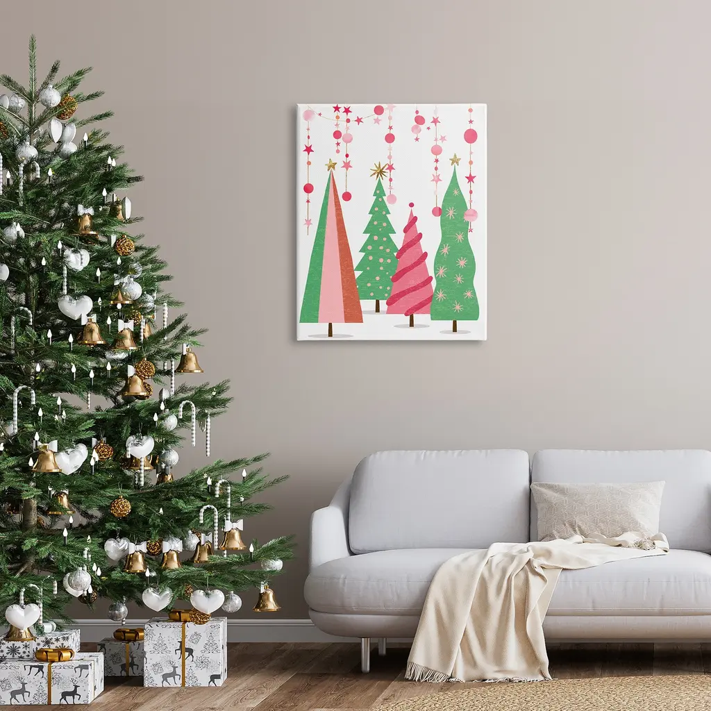 Stupell Pink & Green Christmas Trees Canvas Wall Art By Ziwei Li - 30 X 40