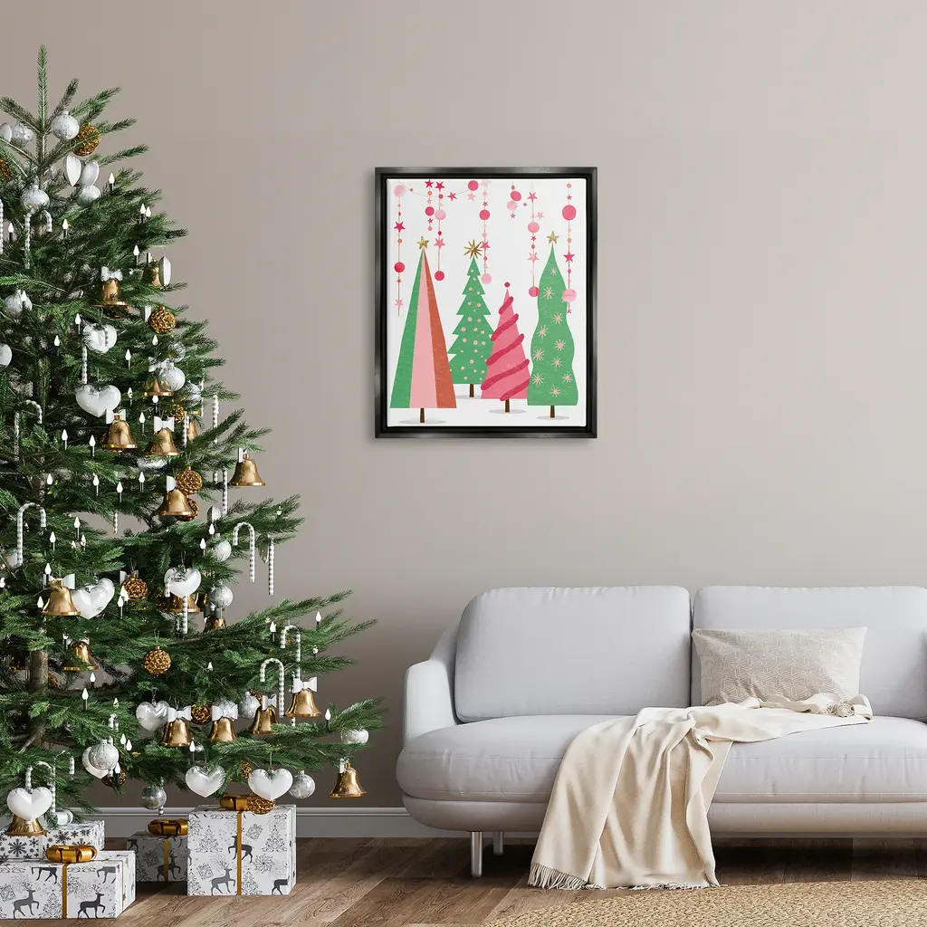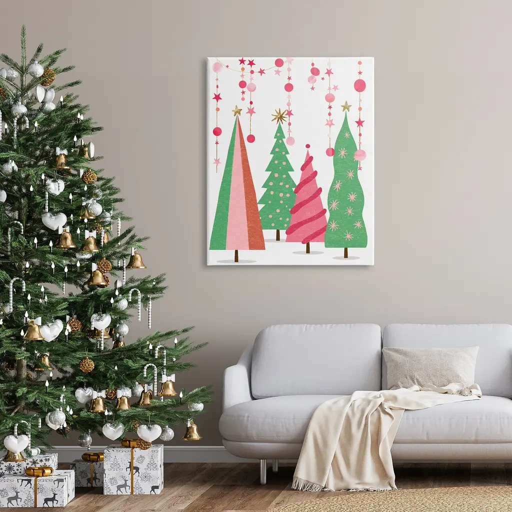 Stupell Pink & Green Christmas Trees Canvas Wall Art By Ziwei Li - 36 X 48