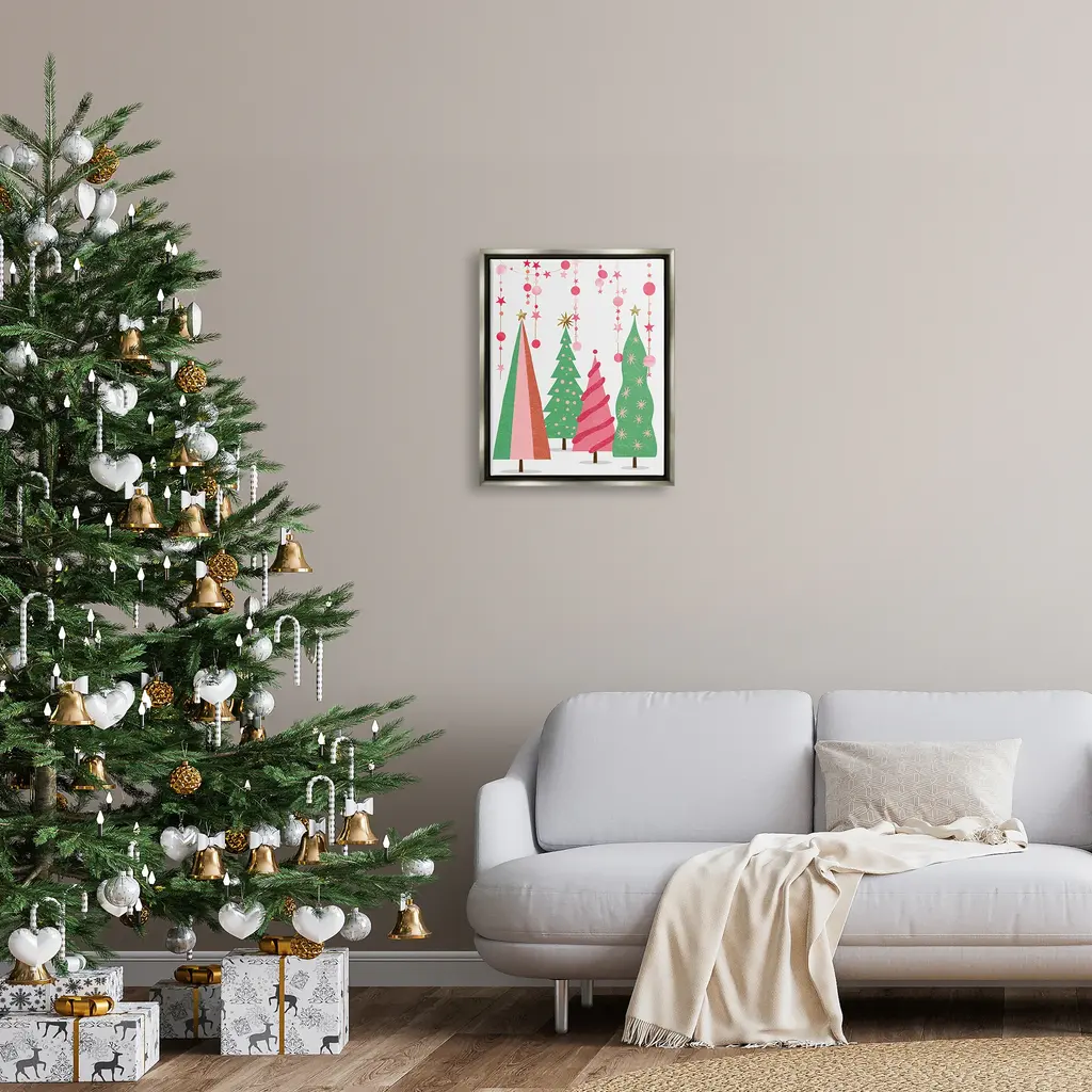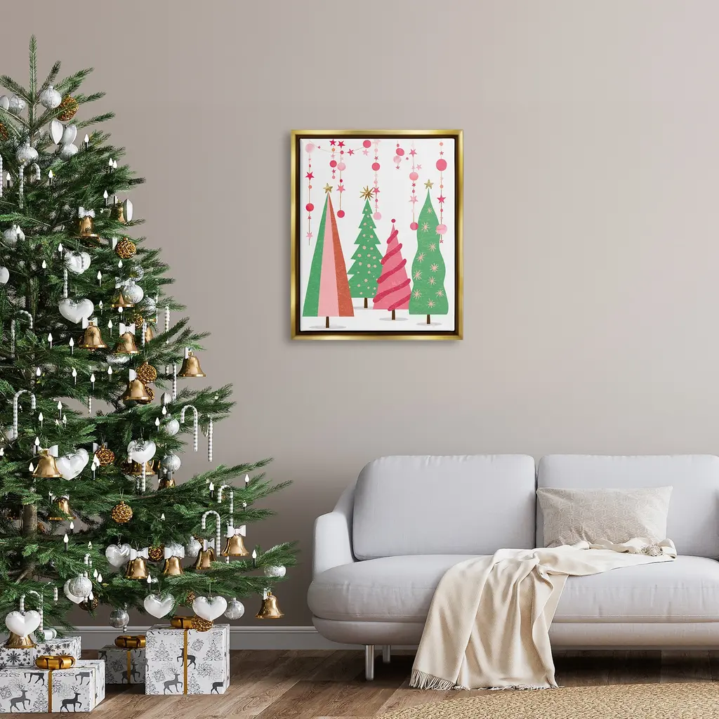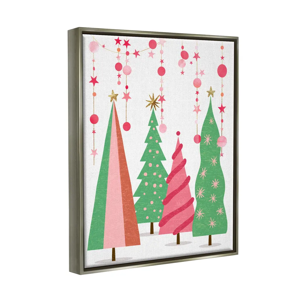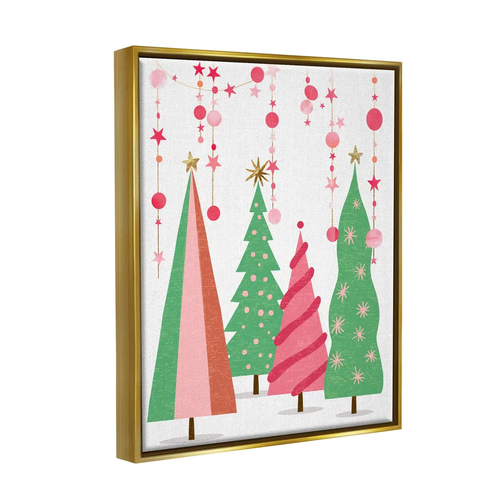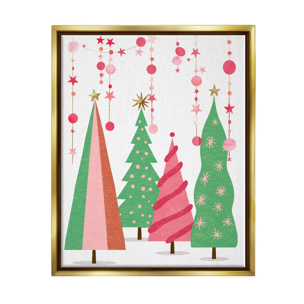 Stupell Pink & Green Christmas Trees Framed Floater Canvas Wall Art By Ziwei Li - 24 X 30 - Gold