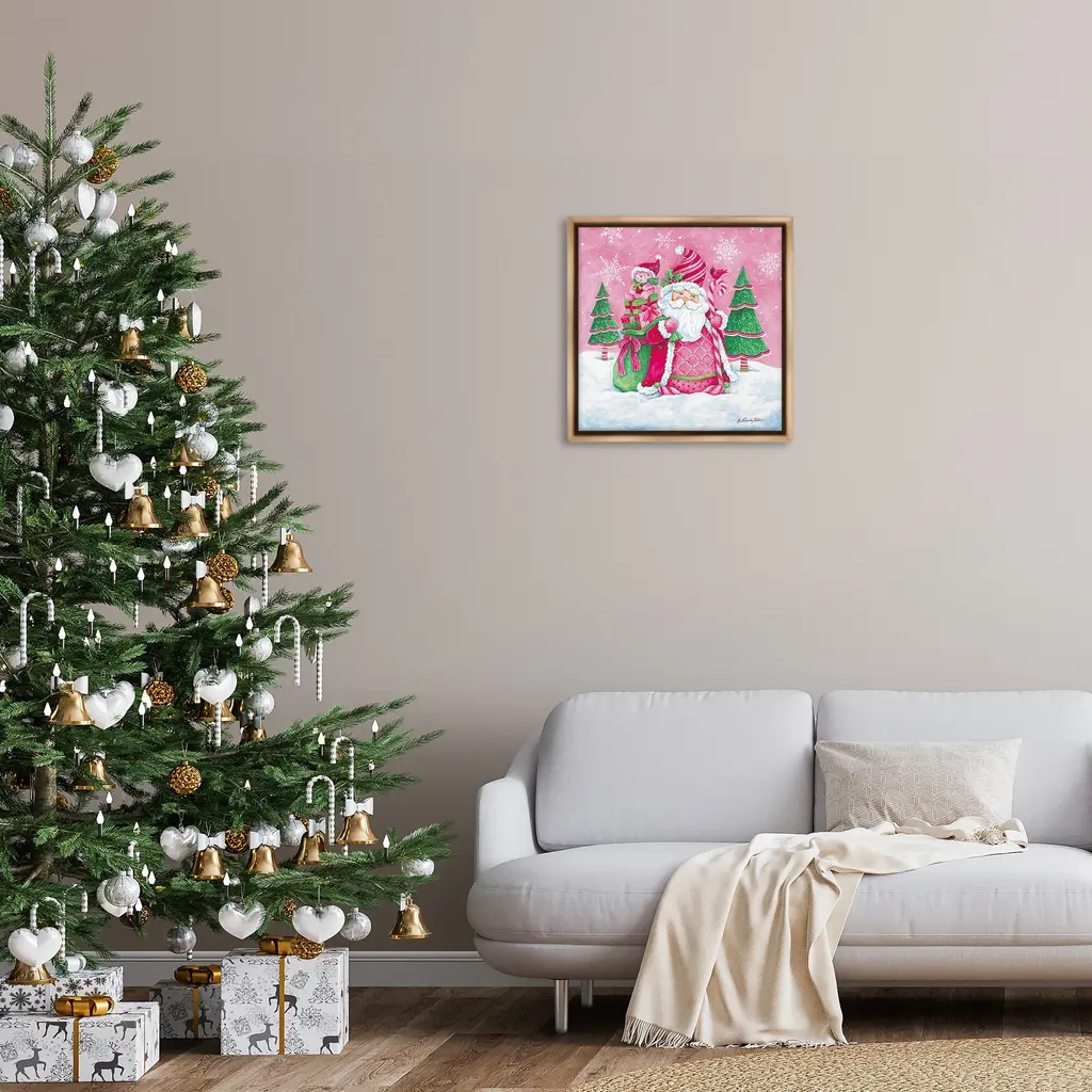 Stupell Pink & Green Santa Scene Framed Floater Canvas Wall Art Design By Diane Kater - 25 X 25 - Brown