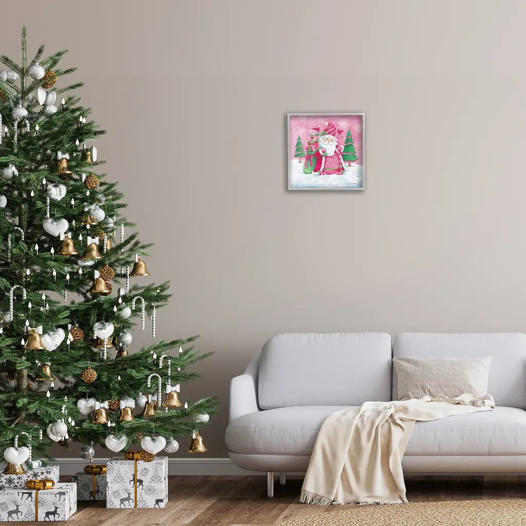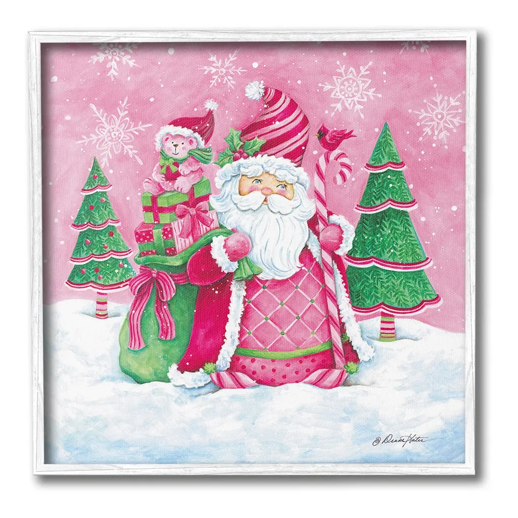 Stupell Pink & Green Santa Scene Framed Giclee Art Design By Diane Kater - 17 X 17 - Grey
