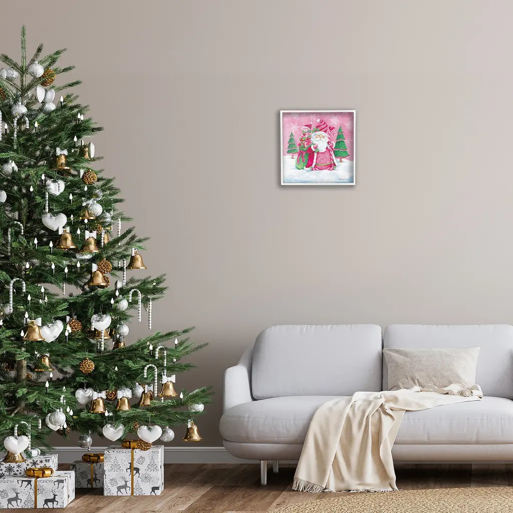 Stupell Pink & Green Santa Scene Framed Giclee Art Design By Diane Kater - 17 X 17 - White