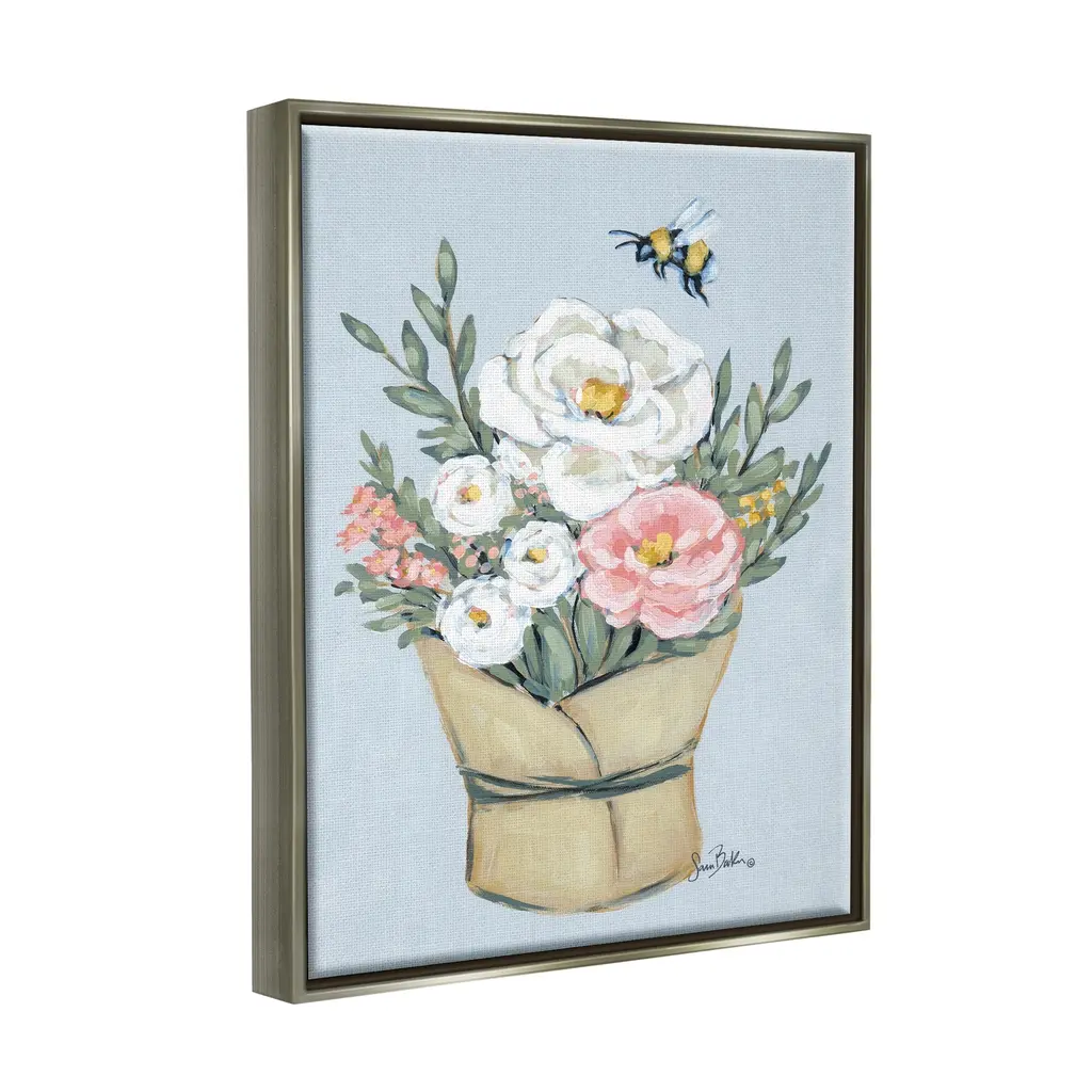 Elevate your home or office to the next level with Stupell Framed Floating Canvas Wall Art. Our premium hand-stretched canvas is mounted securely into a sturdy lightweight frame. The museum-style gap between the wrapped canvas and the box frame gives the illusion of floating artwork. Stupell Wall Art is made in the USA.Features: Dimensions: 17 x 1.7 x 21 Frame, 16 x 1.5 x 20 Canvas ArtFloating Frame Sizes Include Standard: 17 x 1.7 x 21 Oversized: 25 x 1.7 x 31Wall Art is Ready to Hang with Hardware Free Hanging. No installation required. For Easy Set Up Lean or Layer Artwork on Shelf or Against Wall.Our elevated 1.7" Thick Floating Frame is the perfect complement to our canvas style Wall Art. We use only the highest quality inks in house with industry leading printing solutions. Canvas is hand stretched over a durable wood foundation and then mounted securly into a Modern Box Frame. Made in the USA.Artwork Relates To: Painting, Flower, Plant, Rose, Petal, Flower Arrangement, Flower Bouquet, Animal, Bee, Honey Bee, Insect, Invertebrate, Anemone, FloralDesign by Sara Baker