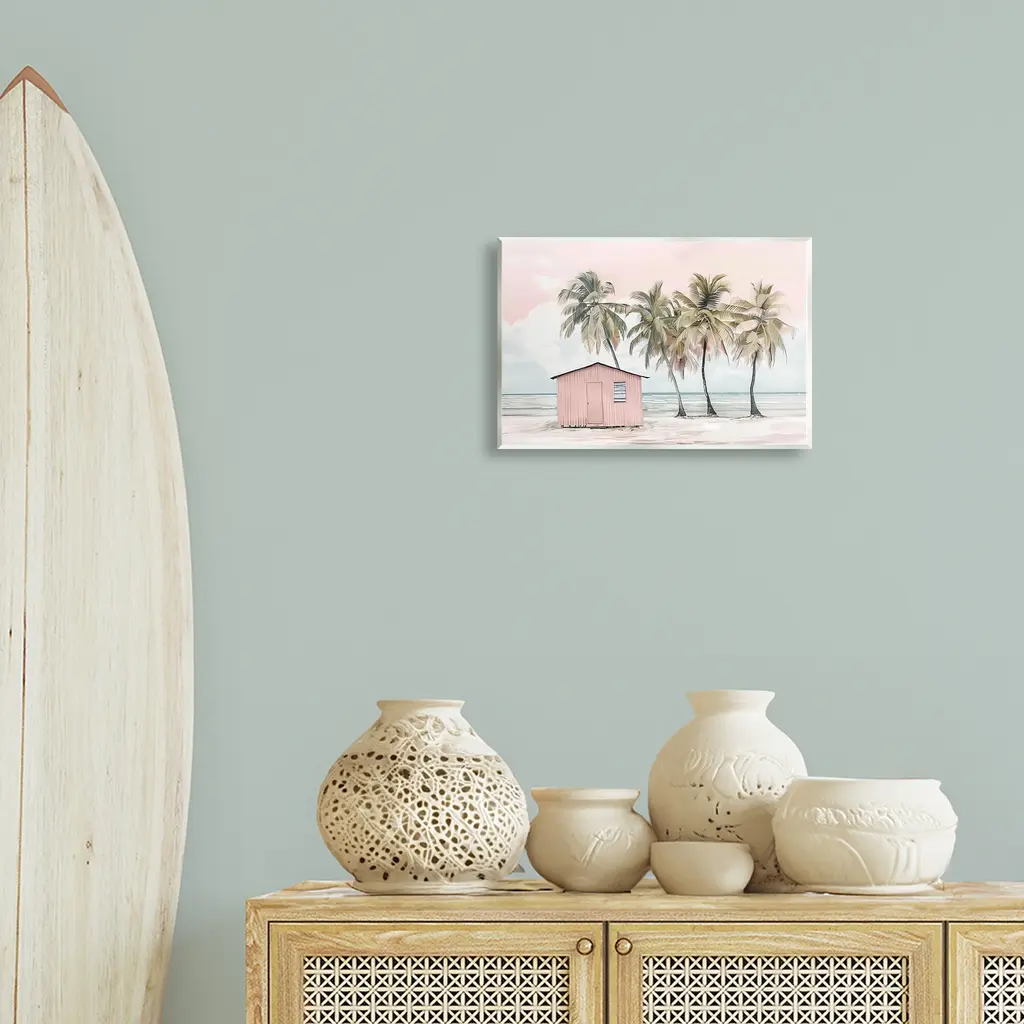 Stupell Pink Beach Hut & Palms Wall Plaque Art Design By Arlington Prints - 15 X 10