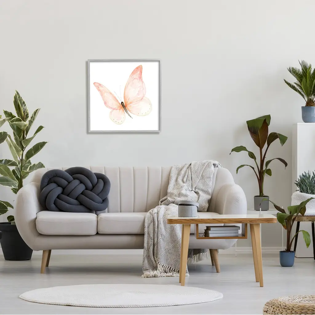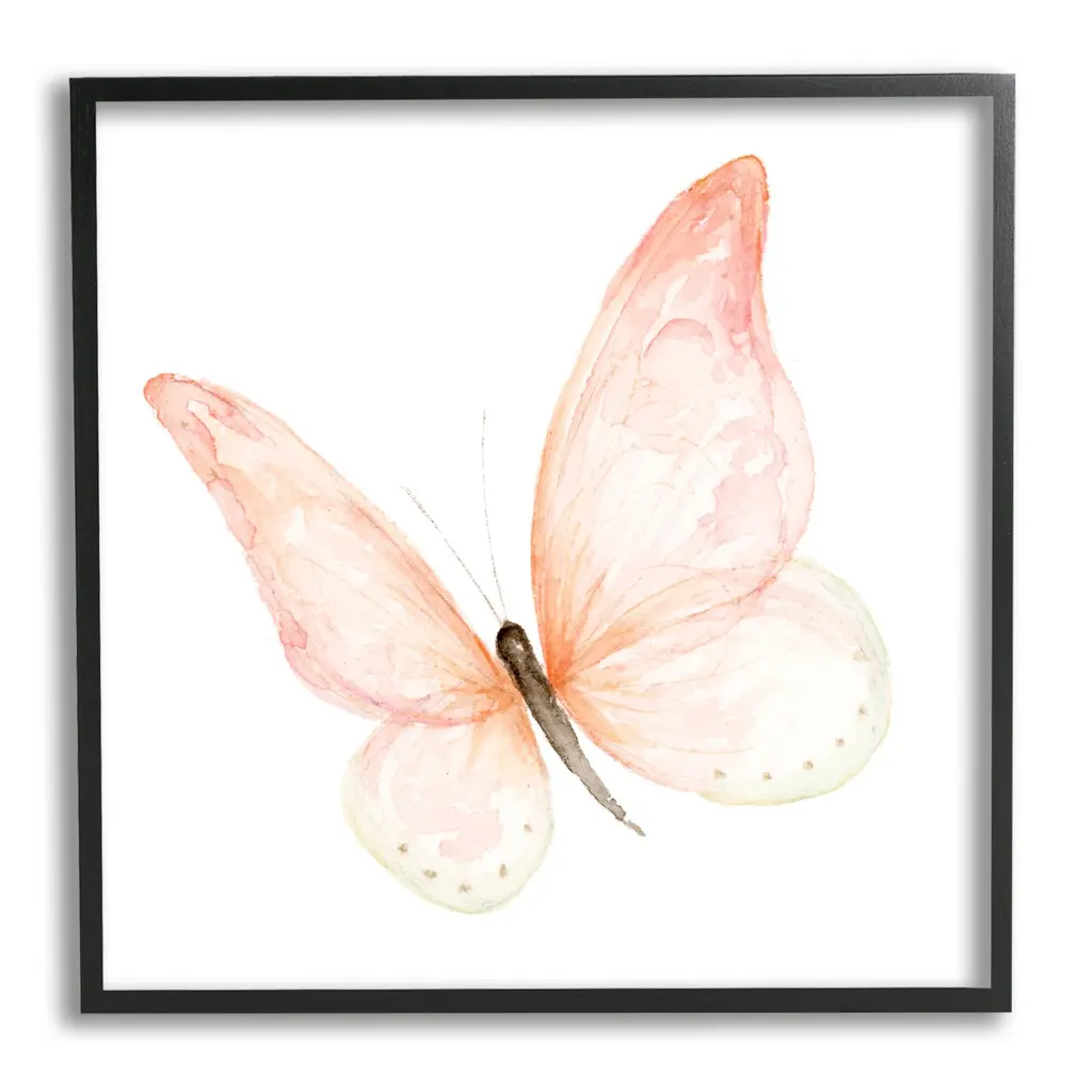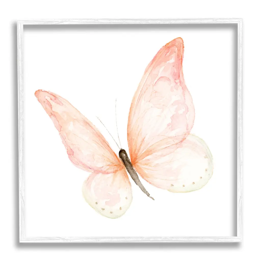 Stupell Pink Butterfly Watercolor Painting Kids' Nursery Insect Framed Wall Art - 24 X 24 - Grey