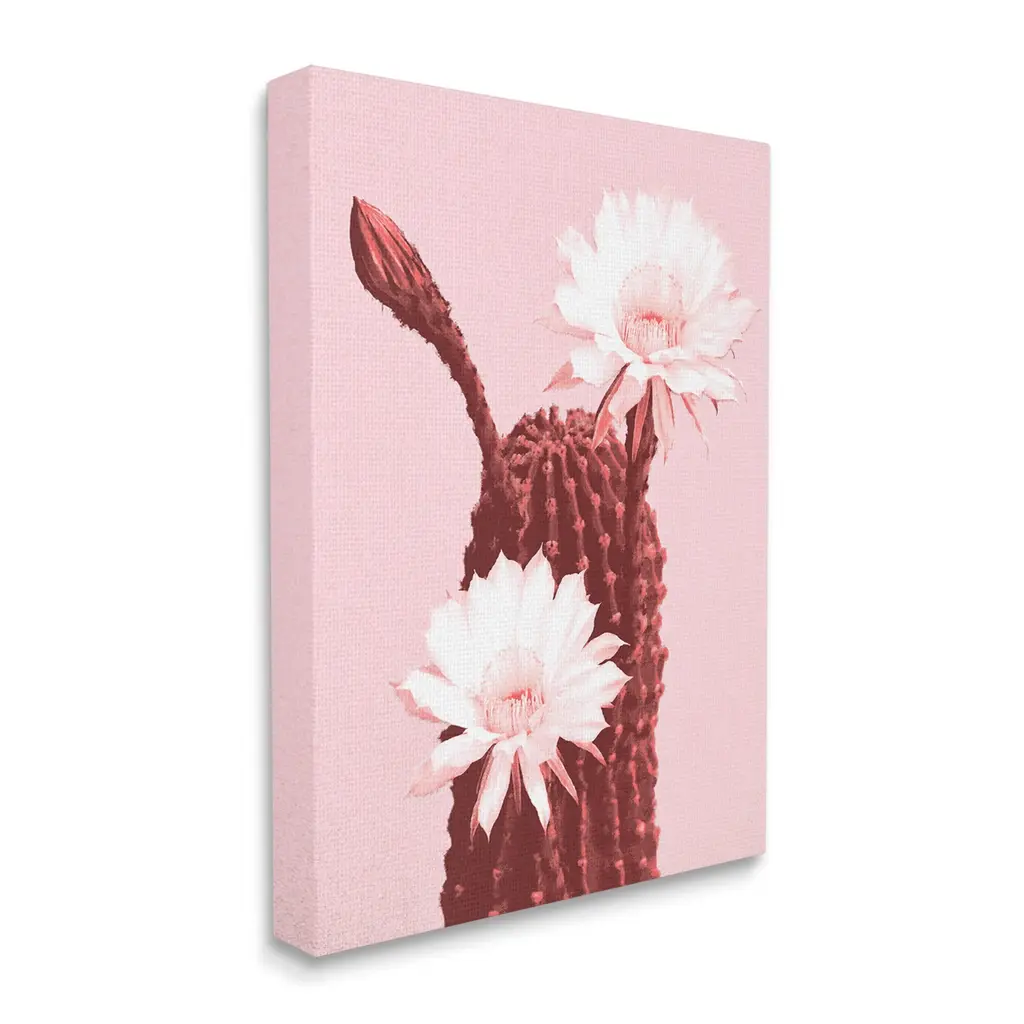 We create our stretched canvas to the highest standards. Using only the highest quality inks and canvas on Mimaki printers, we hand-cut and stretch each piece over a 1.5-inch thick wooden frame for hanging. As a result, the art comes ready to hang on the sturdy ledge with no installation required. Stupell Wall Art is made in the USA.Features: Dimensions: 16 x 1.5 x 20 InchesStretched Canvas Sizes Include Standard: 16 x 1.5 x 20 Large: 20 x 1.5 x 30 X-Large: 30 x 1.5 x 40 Oversized: 36 x 1.5 x 48Wall Art is Ready to Hang with Hardware Free Hanging. No installation required. For Easy Set Up Lean or Layer Artwork on Shelf or Against Wall.Our stretched canvas is created with the highest standards. We use only the highest quality inks and canvas on our in house Mimaki printers, and then hand cut and stretch each piece over a 1.5 inch thick wooden frame for hanging. Made In USA.Artwork Relates To: Flower, Petal, Plant, Cactus, Desert, Cactus, BotanicalDesign by Lil' Rue
