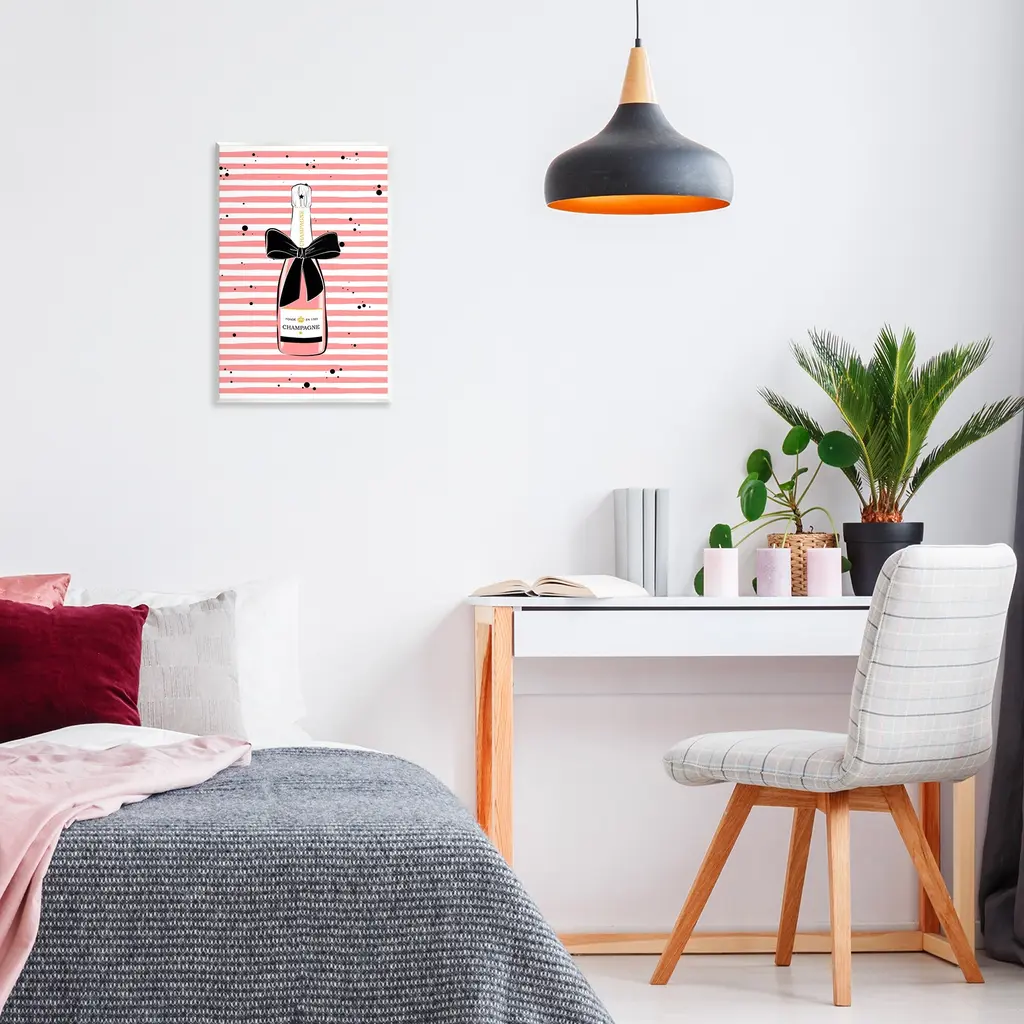 Our wall plaques start as high-quality lithograph prints mounted on durable 0.5-inch thick MDF wood. Each piece is hand finished and comes with a fresh layer of white foil on the sides to give it a crisp, clean look. Plaques arrive ready to hang without installation and come with removable plastic corners to keep them from damage in transit. Stupell Wall Art is made in the USA.Features: Dimensions: 10 x 0.5 x 15 InchesWall Plaque Product Sizes Include 10"x15" and 13"x19". All wall plaque products have a 0.5" Depth. Wall Art is Ready to Hang with Hardware Free Hanging. No installation required. For Easy Set Up Lean or Layer Artwork on Shelf or Against Wall.All of our wall plaques start off as high quality lithograph prints that are then mounted on durable 0.5 inch thick MDF wood. Each piece is hand finished and comes with a fresh layer of foil on the sides to give it a crisp clean look. Made In USA.Artwork Relates To: Champagne, Drink, Alcohol, Glam, Pattern, Stripes, Ribbon, BowDesign by Martina Pavlova
