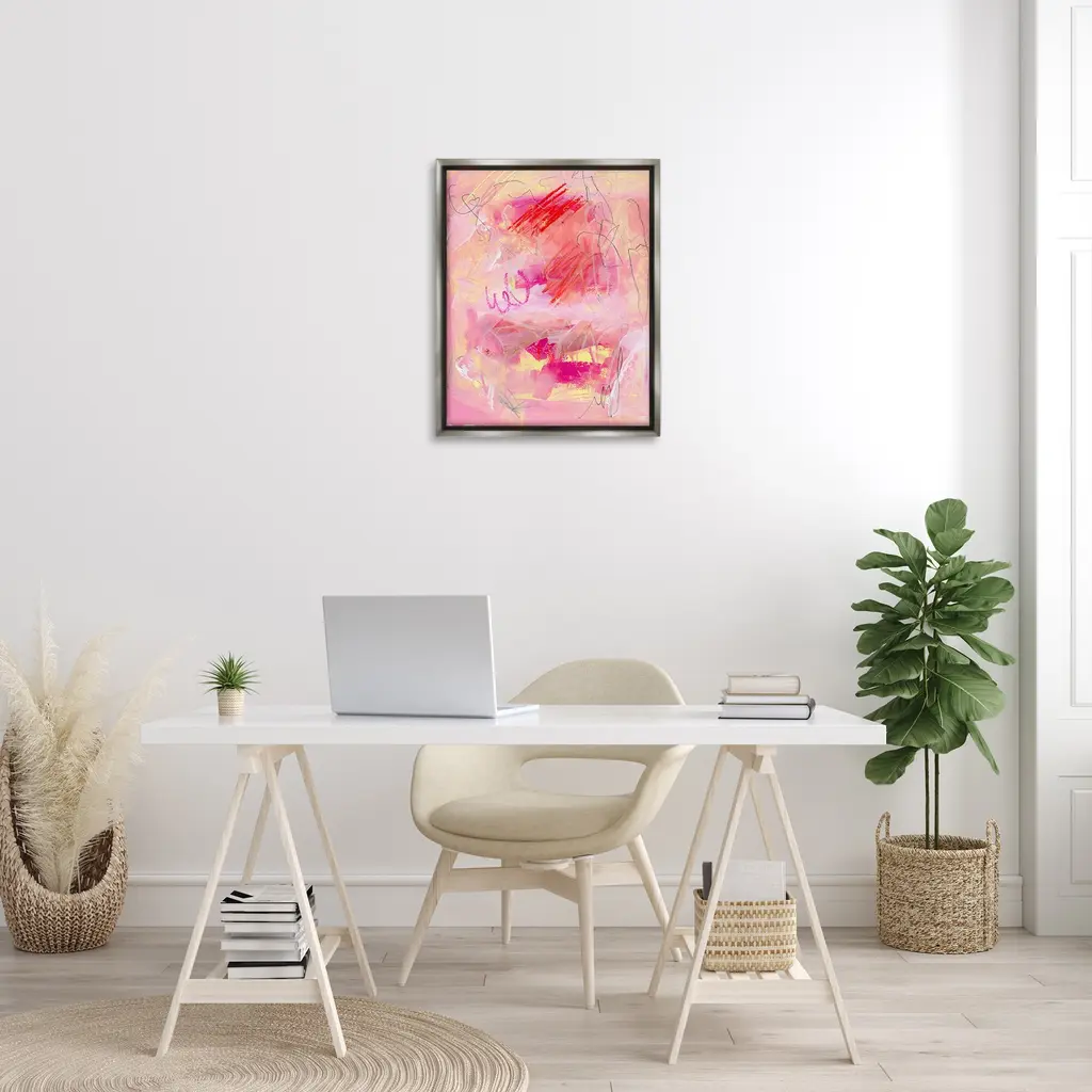 Elevate your home or office to the next level with Stupell Framed Floating Canvas Wall Art. Our premium hand-stretched canvas is mounted securely into a sturdy lightweight frame. The museum-style gap between the wrapped canvas and the box frame gives the illusion of floating artwork. Stupell Wall Art is made in the USA.Features: Dimensions: 17 x 1.7 x 21 Frame, 16 x 1.5 x 20 Canvas ArtFloating Frame Canvas Products are available in sizes 17"x21" and 25"x31". All Floating Frame Canvas Products have a 1.7" Depth.Wall Art is Ready to Hang with Hardware Free Hanging. No Installation required. For Easy Set Up Lean or Layer Artwork on Shelf or Against Wall. Artwork is Permently Fixed into the Frame.Our elevated 1.7" Thick Floating Frame is the perfect complement to our canvas style Wall Art. We use only the highest quality inks in house with industry leading printing solutions. Canvas is hand stretched over a durable wood foundation and then mounted securly into a Modern Box Frame. Made in the USA.Artwork Relates To: Modern, Abstract, Pink, Scribble, Chaotic, PaintingDesign by Jennifer Paxton Parker