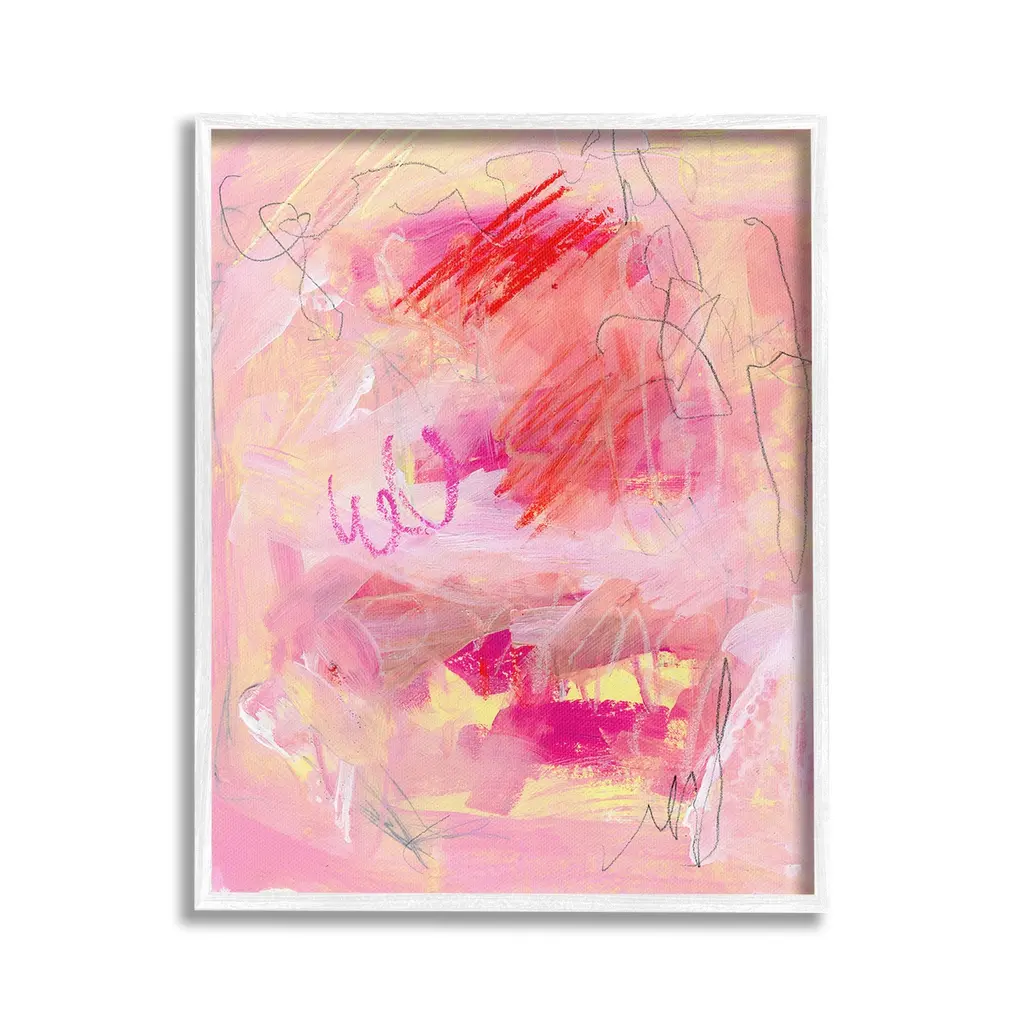 Add dimension to any room with our textured Framed Giclee Artwork. Our framed artwork is securely mounted into a 1.5-inch thick wood grain frame and ready to hang. Frames are available in three alluring styles: black, gray farmhouse and white. In addition, you should check out our oversized options if you want a statement piece. Stupell Wall Art is made in the USA.Features: Dimensions: 11 x 1.5 x 14 FramedFramed Giclee Products are available in the sizes 11"x14", 16"x20" or 24"x30". All Framed Giclee Products have a 1.5" Depth. Wall Art is Ready to Hang with Hardware Free Hanging. No installation required. For Easy Set Up Lean or Layer Artwork on Shelf or Against Wall.Our giclée prints are carefully mounted on a durable MDF backing, and then perfectly finished in a 1.5 inch thick woodgrain frame. Mounted frame colors include black, gray farmhouse and white. Made In USA.Artwork Relates To: Modern, Abstract, Pink, Scribble, Chaotic, PaintingDesign by Jennifer Paxton Parker