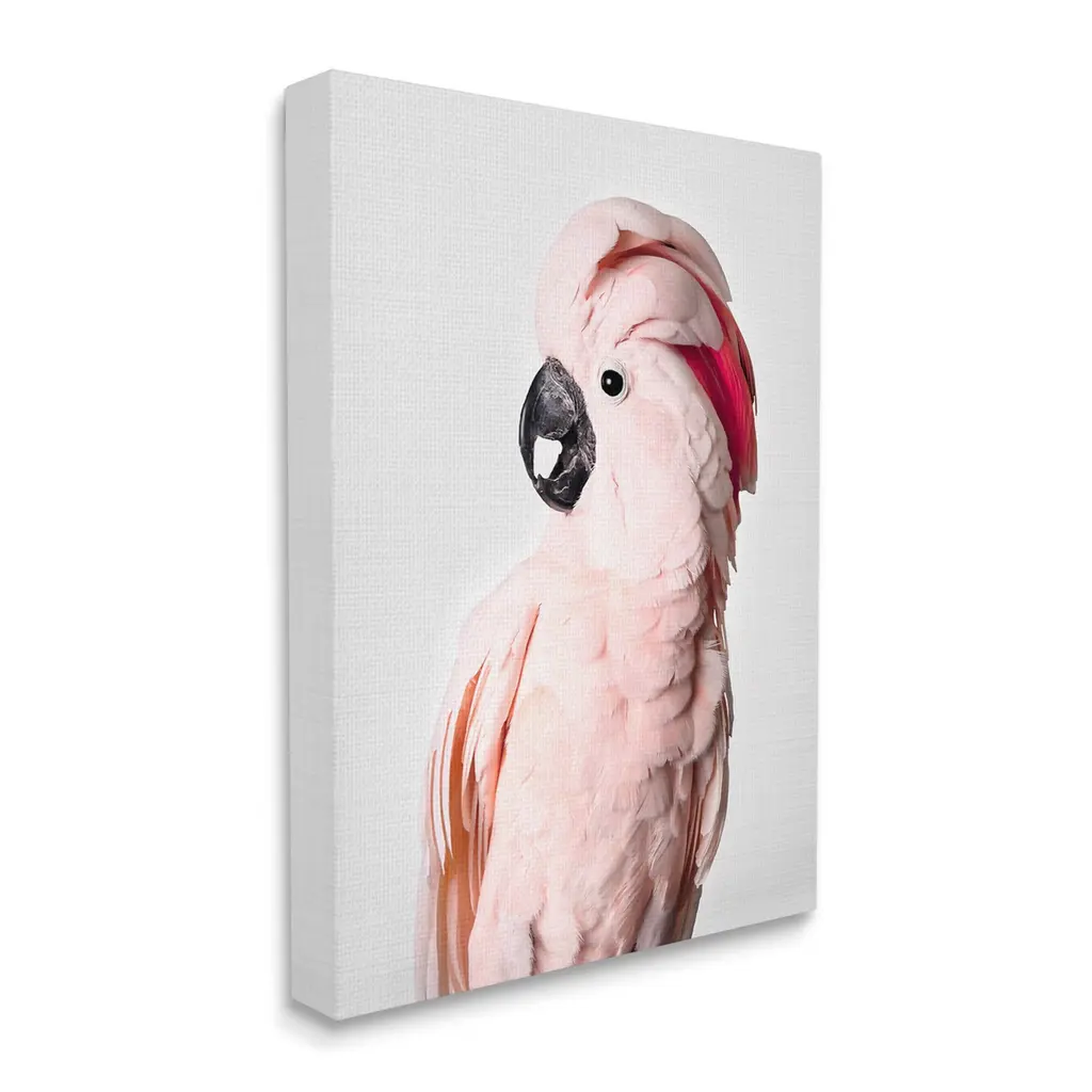 We create our stretched canvas to the highest standards. Using only the highest quality inks and canvas on Mimaki printers, we hand-cut and stretch each piece over a 1.5-inch thick wooden frame for hanging. As a result, the art comes ready to hang on the sturdy ledge with no installation required. Stupell Wall Art is made in the USA.Features: Dimensions: 16 x 1.5 x 20 InchesStretched Canvas Sizes Include Standard: 16 x 1.5 x 20 Large: 20 x 1.5 x 30 X-Large: 30 x 1.5 x 40 Oversized: 36 x 1.5 x 48Wall Art is Ready to Hang with Hardware Free Hanging. No installation required. For Easy Set Up Lean or Layer Artwork on Shelf or Against Wall.Our stretched canvas is created with the highest standards. We use only the highest quality inks and canvas on our in house Mimaki printers, and then hand cut and stretch each piece over a 1.5 inch thick wooden frame for hanging. Made In USA.Artwork Relates To: Animal, Bird, Cockatoo, Parrot, Photography, PortraitDesign by Sisi and Seb