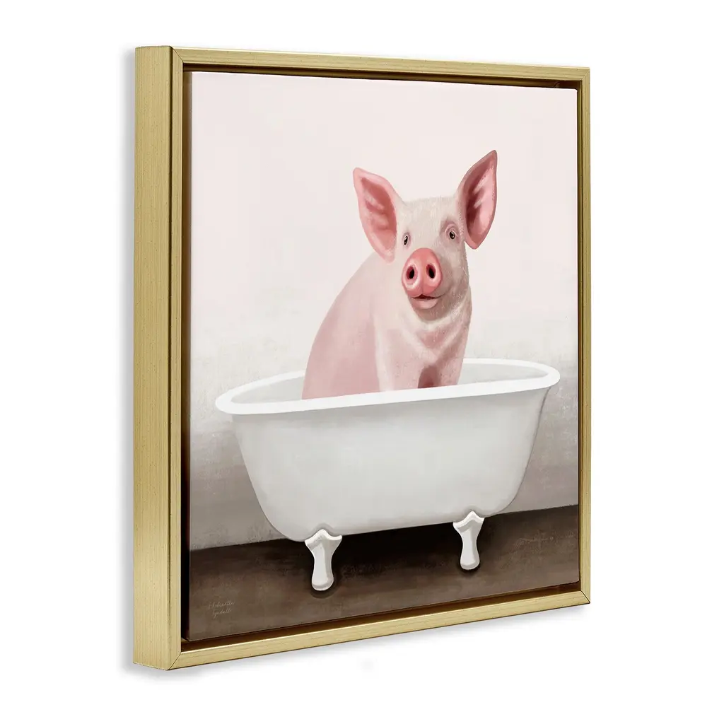 Elevate your home or office to the next level with Stupell Framed Floating Canvas Wall Art. Our premium hand-stretched canvas is mounted securely into a sturdy lightweight frame. The museum-style gap between the wrapped canvas and the box frame gives the illusion of floating artwork. Stupell Wall Art is made in the USA.Features: Dimensions: 18 x 1.7 x 18 Frame, 17 x 1.5 x 17 Canvas ArtFloating Frame Canvas Products are available in sizes 18"x18" and 25"x25". All Floating Frame Canvas Products have a 1.7" Depth.Wall Art is Ready to Hang with Hardware Free Hanging. No Installation required. For Easy Set Up Lean or Layer Artwork on Shelf or Against Wall. Artwork is Permently Fixed into the Frame.Our elevated 1.7" Thick Floating Frame is the perfect complement to our canvas style Wall Art. We use only the highest quality inks in house with industry leading printing solutions. Canvas is hand stretched over a durable wood foundation and then mounted securly into a Modern Box Frame. Made in the USA.Artwork Relates To: Bathroom, Tub, Bathtub, Country, Farmhouse, Pig, Vintage, TraditionalDesign by Elizabeth Tyndall